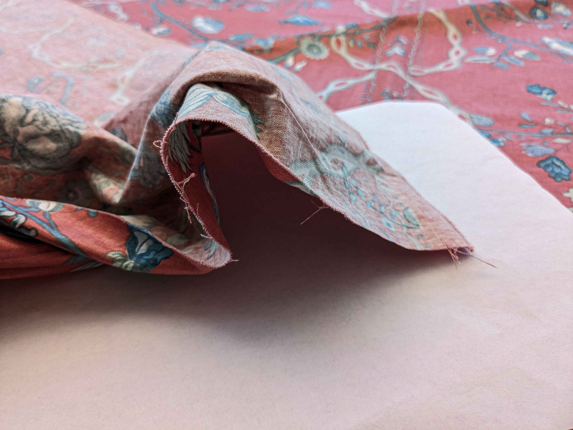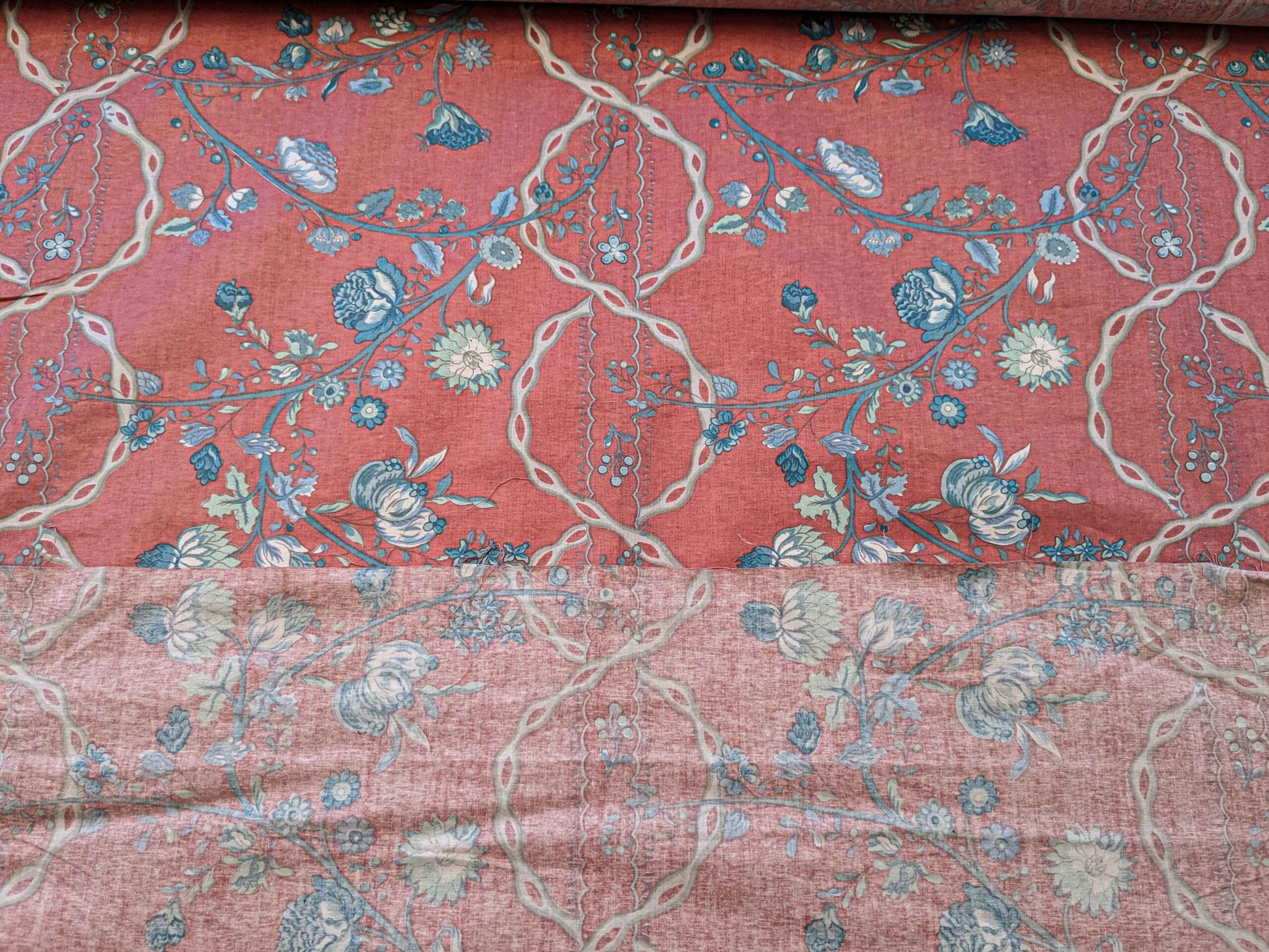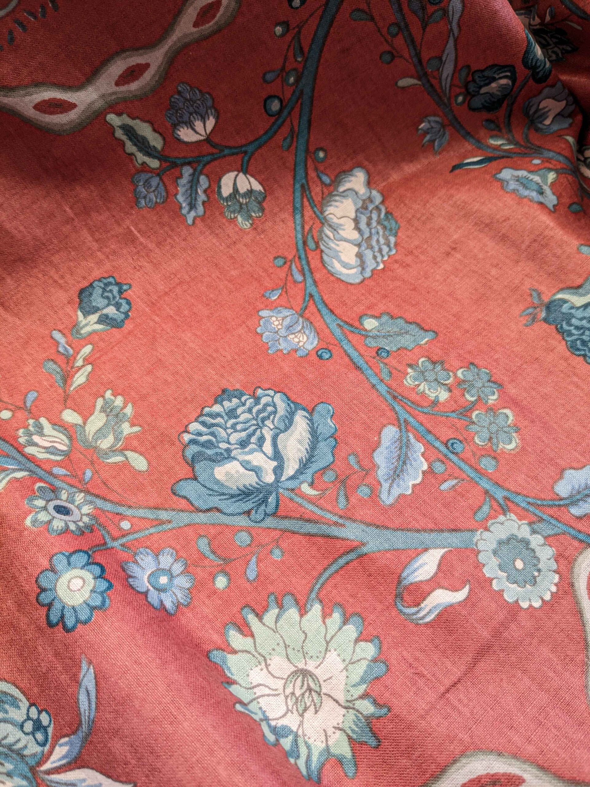 2.2y Scalamandre Floral Botanical Tree Foliage French Court Blue White Gray on Red