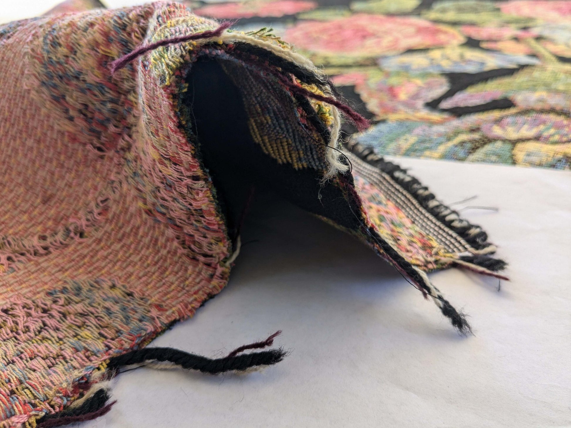 2.3 yards Scalamandre Floral Botanical Foliage Tapestry Red Pink Blue Flowers Rose Iris Carnation Tulip Black Large pattern Heavy