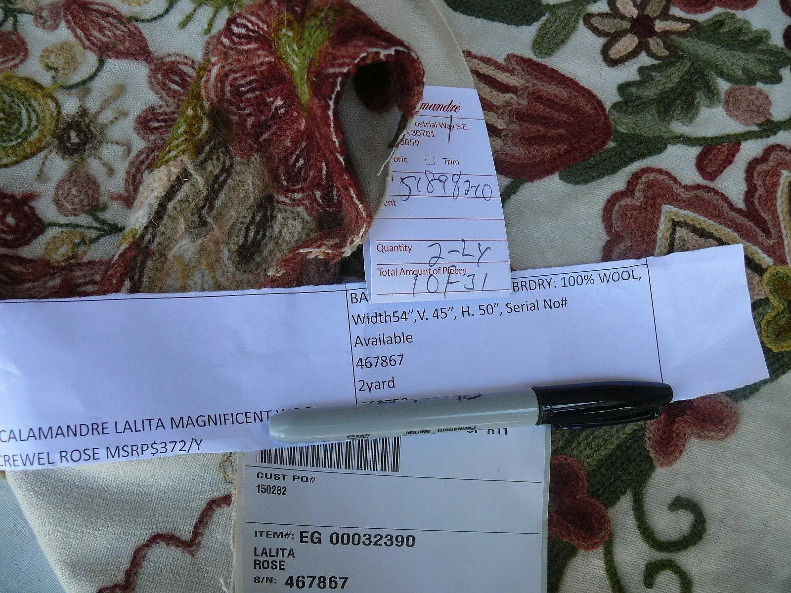 MOST HEAVY CREWEL ever! Designer: Scalamandre / Old World Weavers