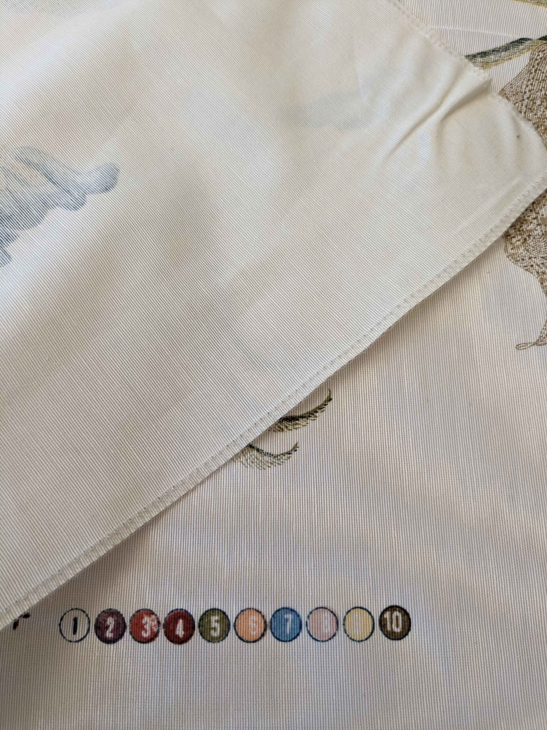 Color, repeat, fiber content, applications & retail price: please see the printout in photo.
