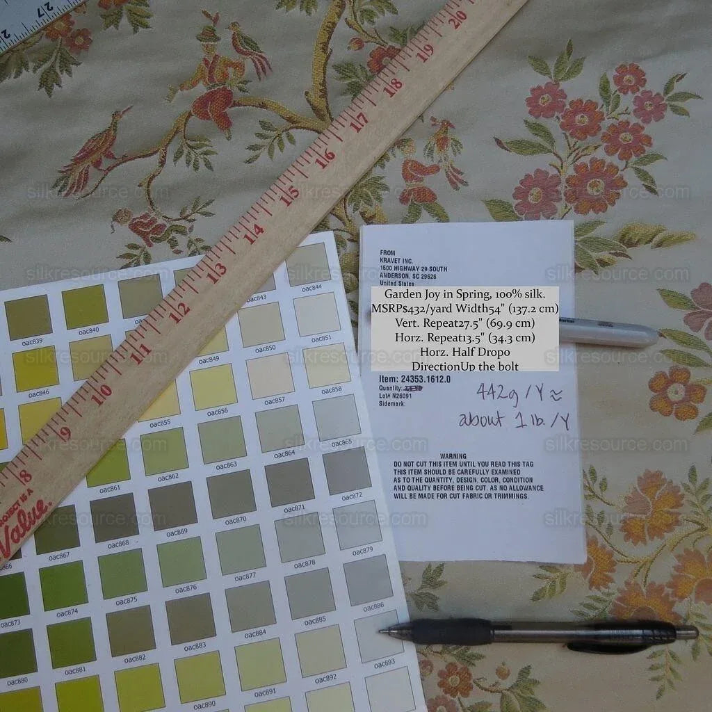 2.5y Kravet Couture Silk Garden Joy In Spring Flower Bird Chinoiserie MSRP USD 432/Y