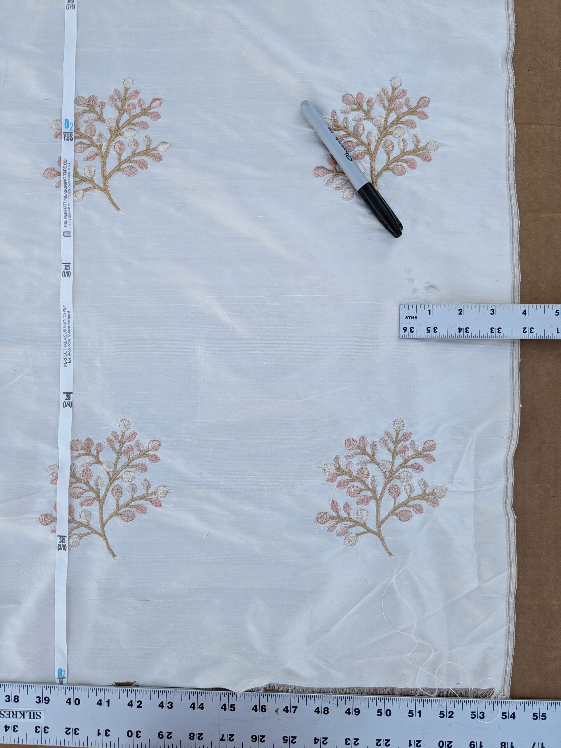 2.5Y Kravet Silk Dupioni Embroidery White Pink Sprig MSRP USD 100+/Y Minor defects