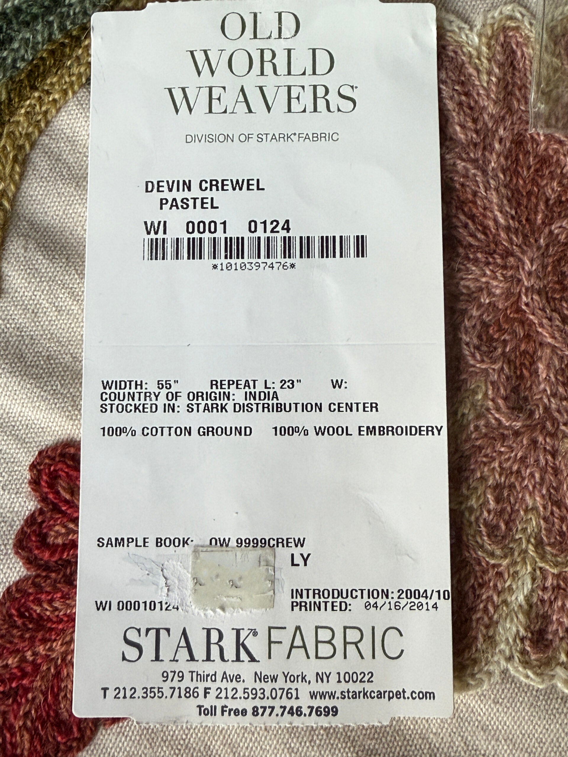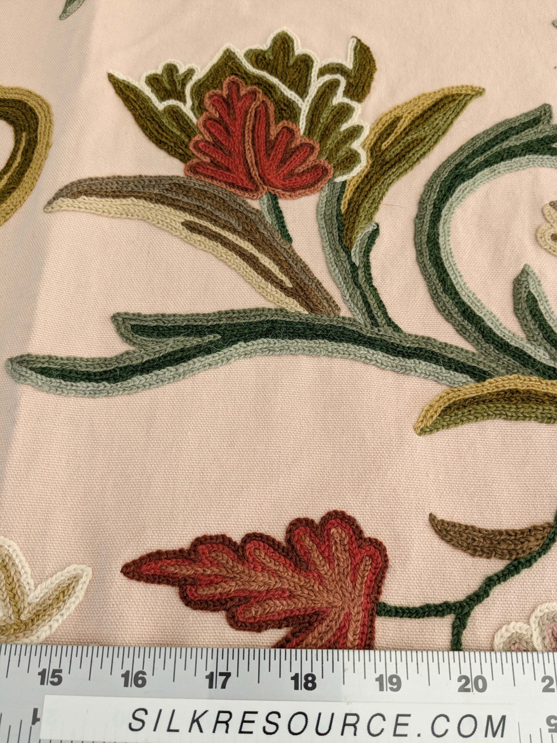 2.5yard Scalamandre Old World Weavers Devin Crewel Pastel Floral Botanical Wool Embroidery on Cotton Beige MSRP USD456/y