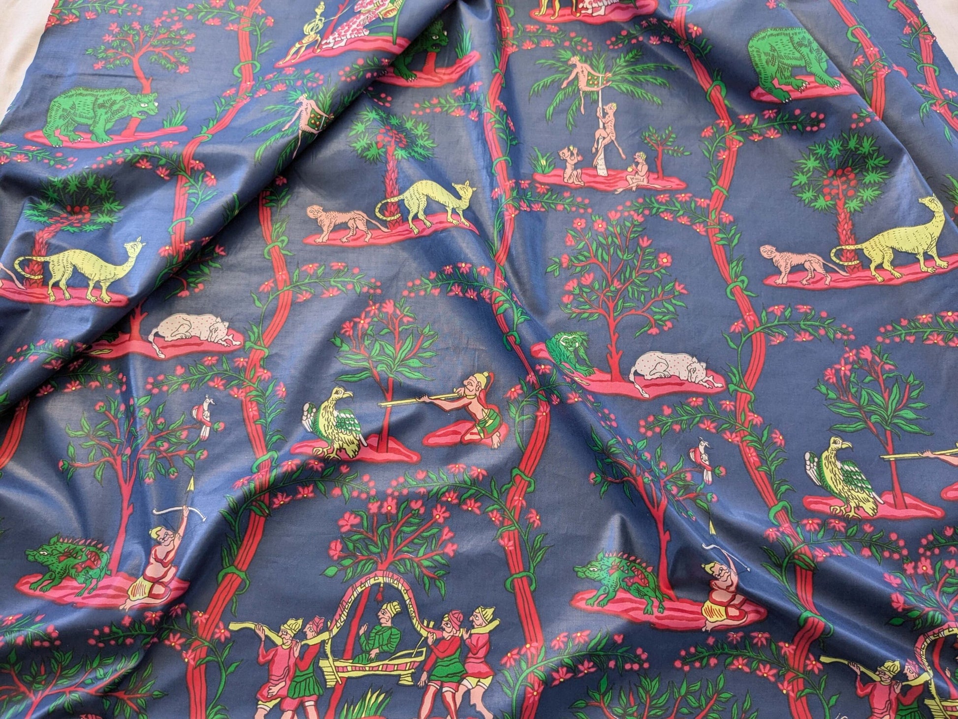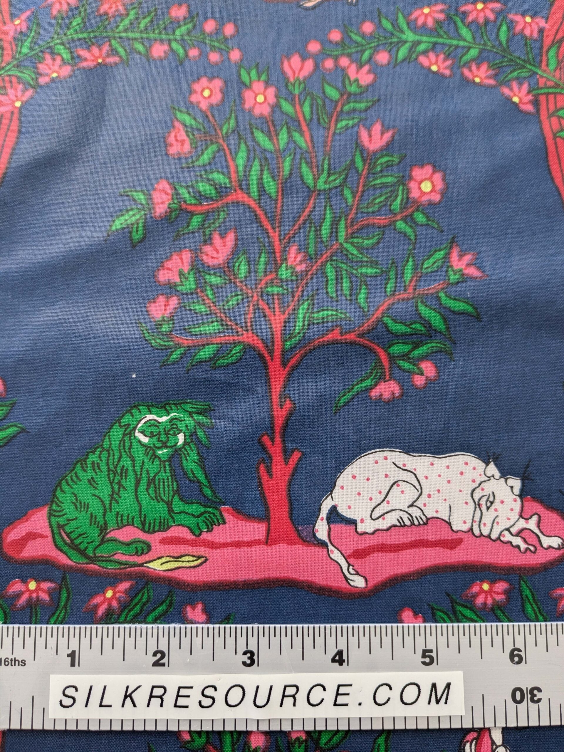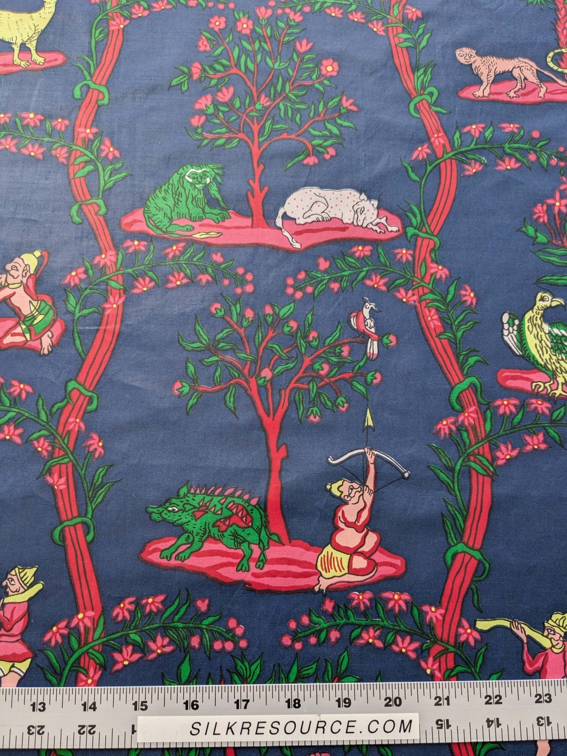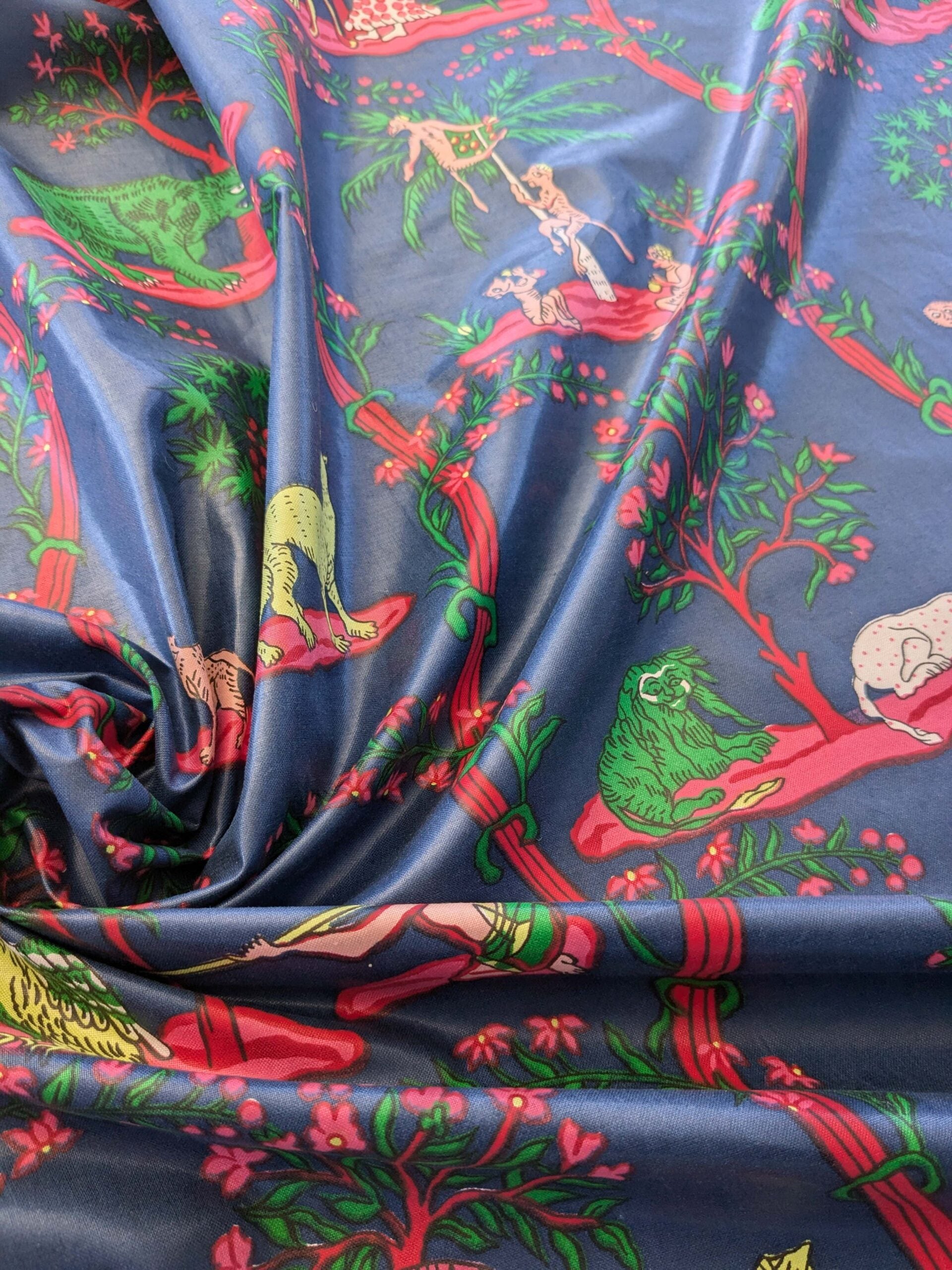 2.8y Scalamanndre Animals Figurative Tiger Botanical Red Green on Blue
