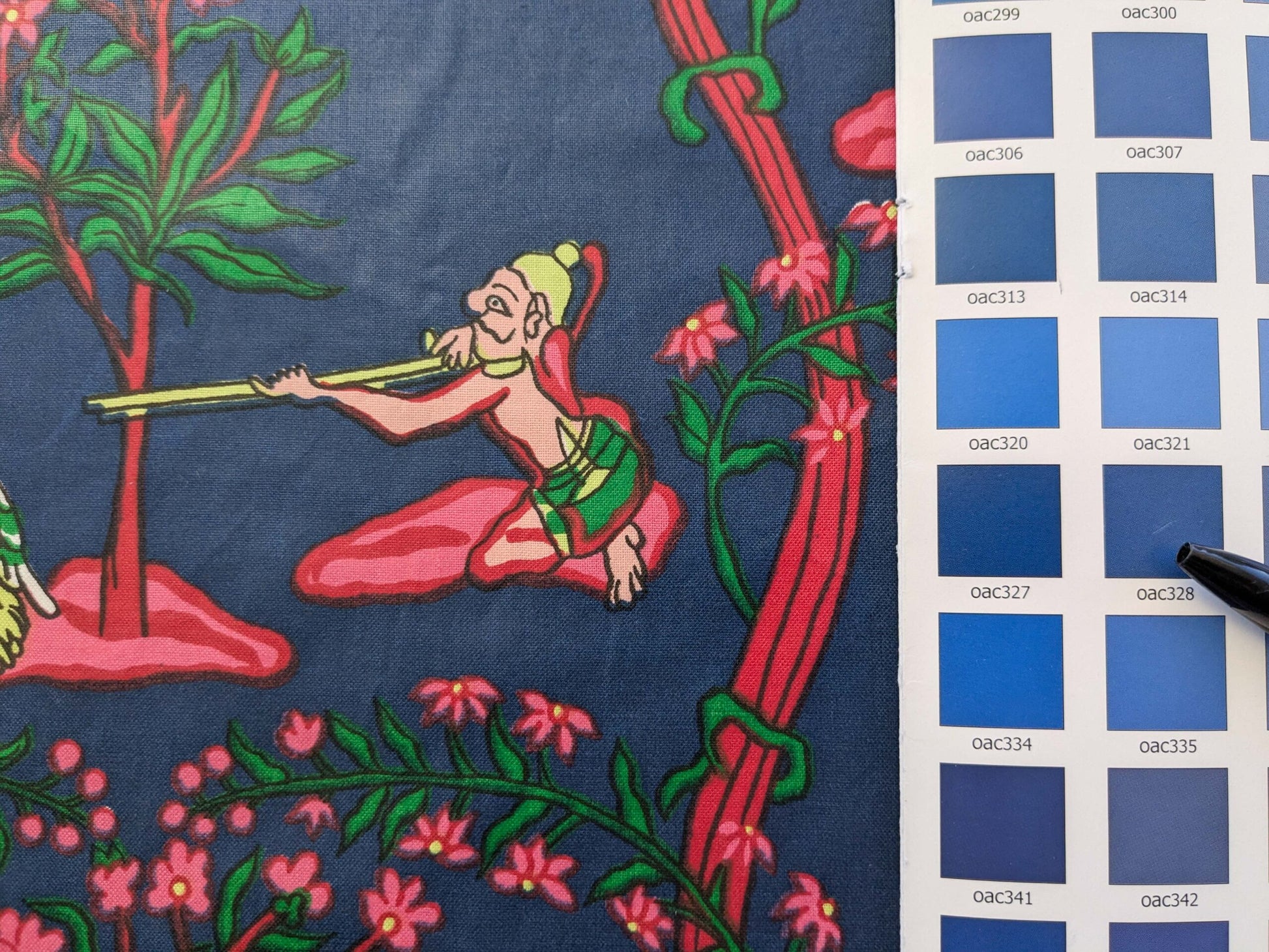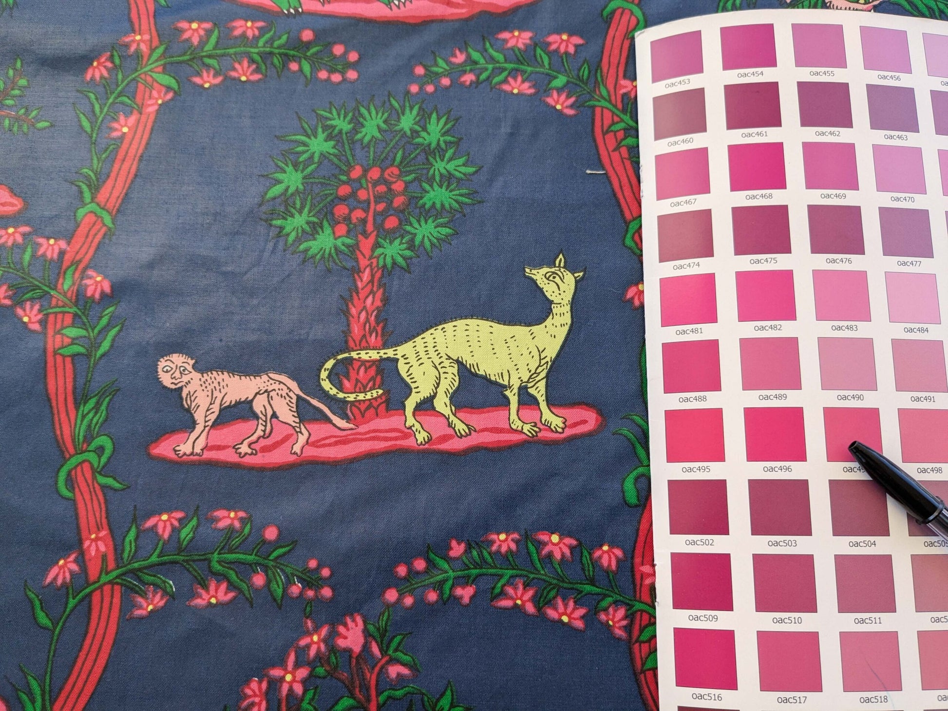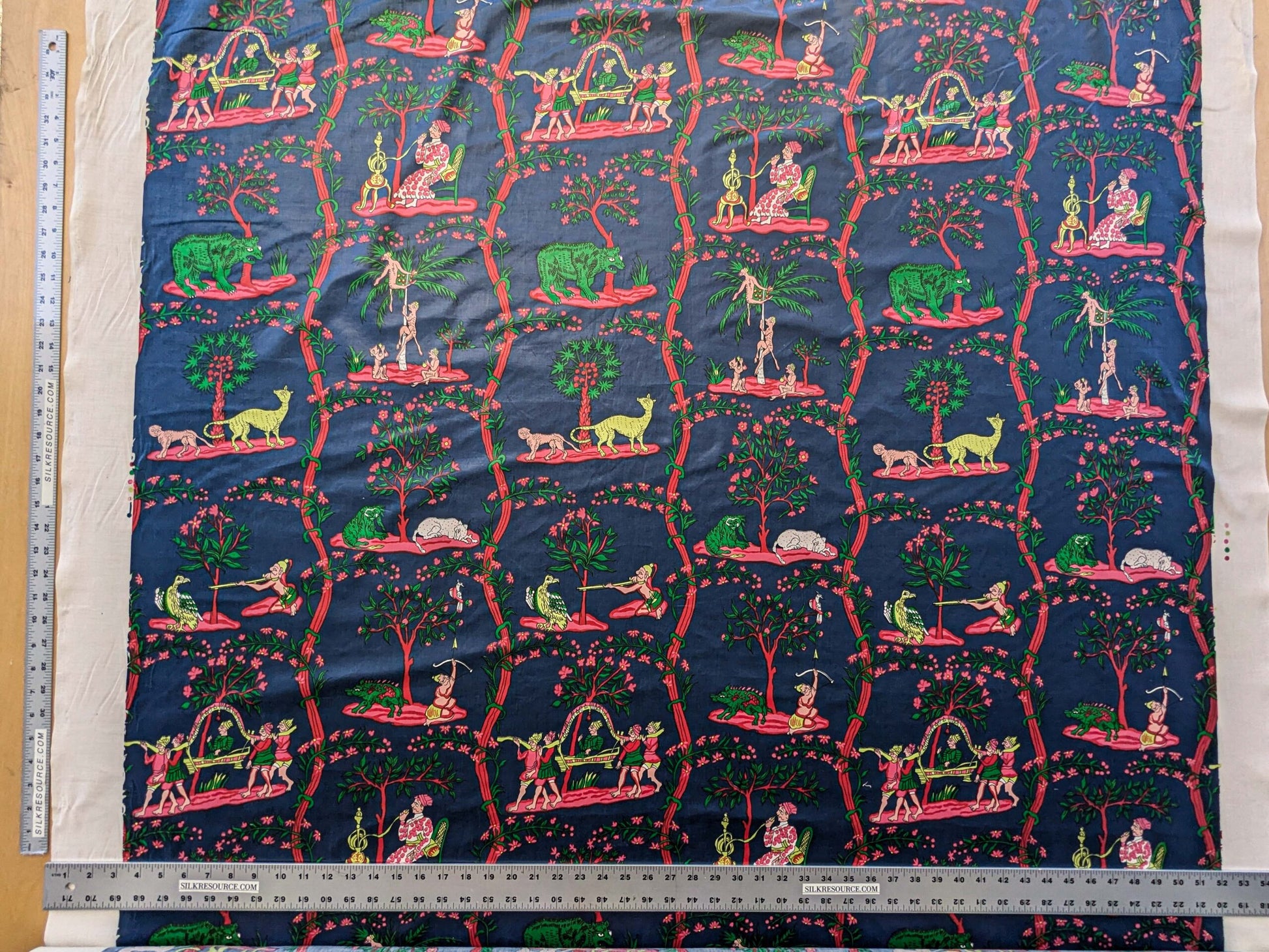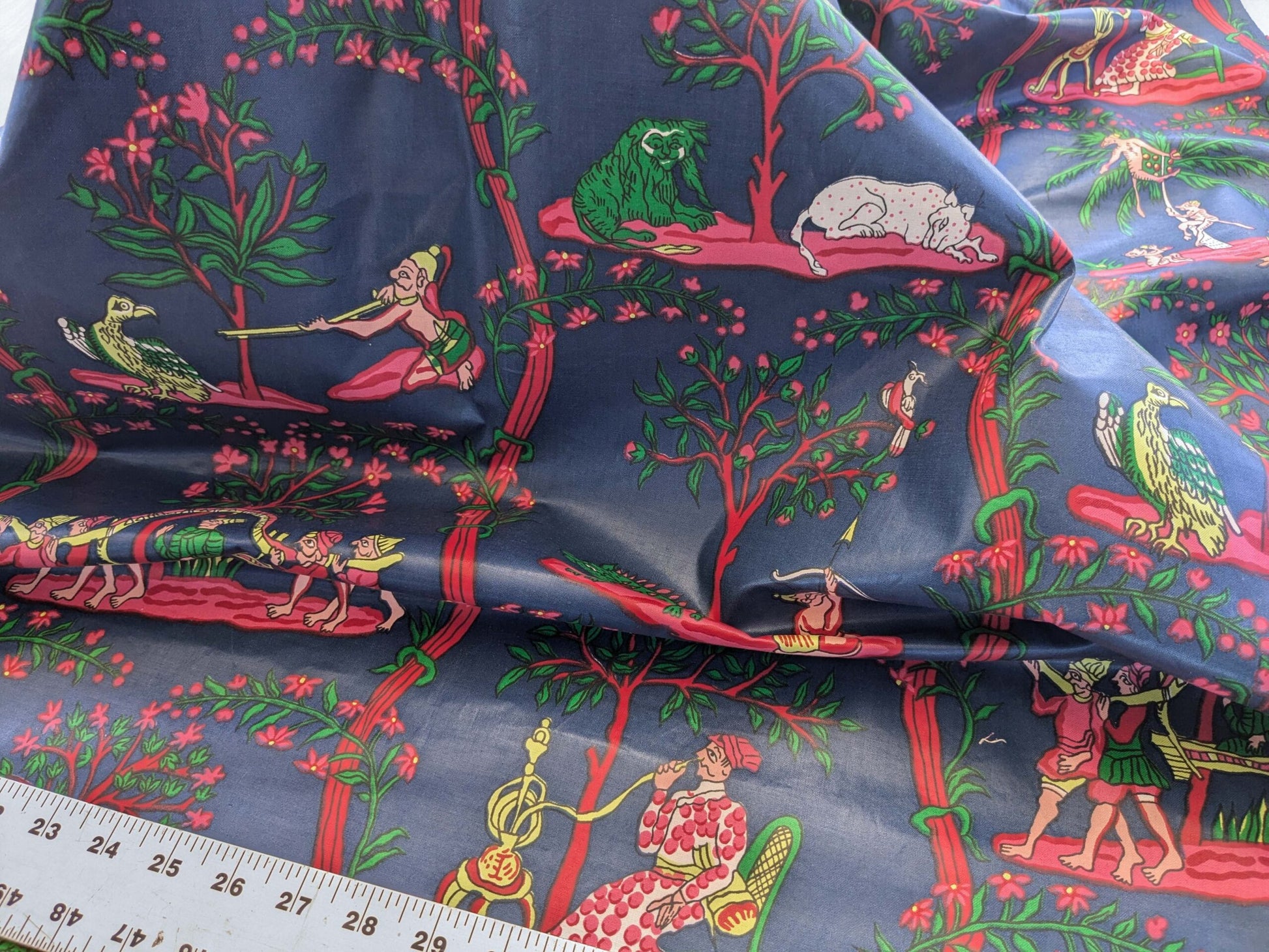 2.8y Scalamanndre Animals Figurative Tiger Botanical Red Green on Blue