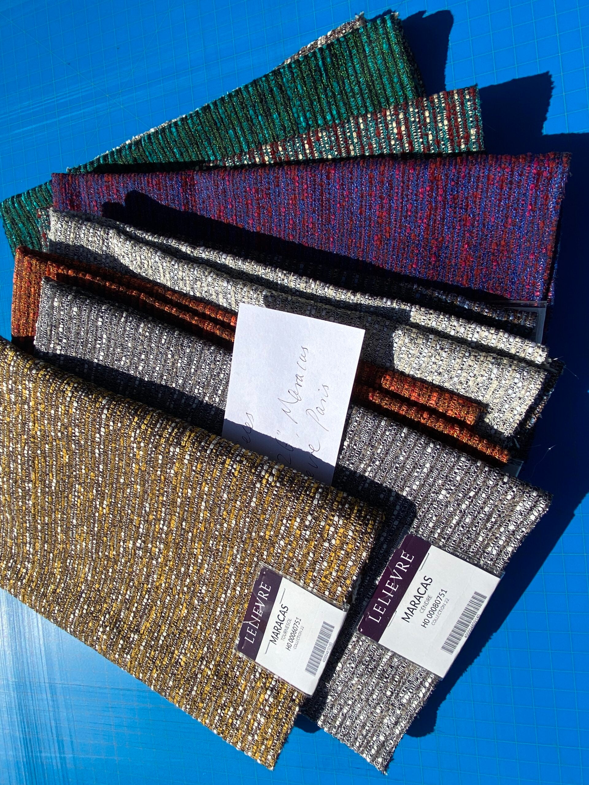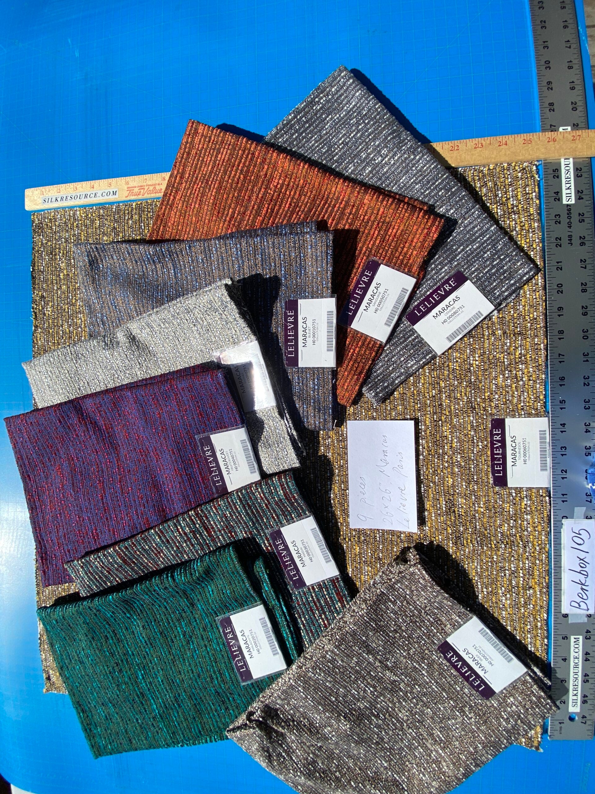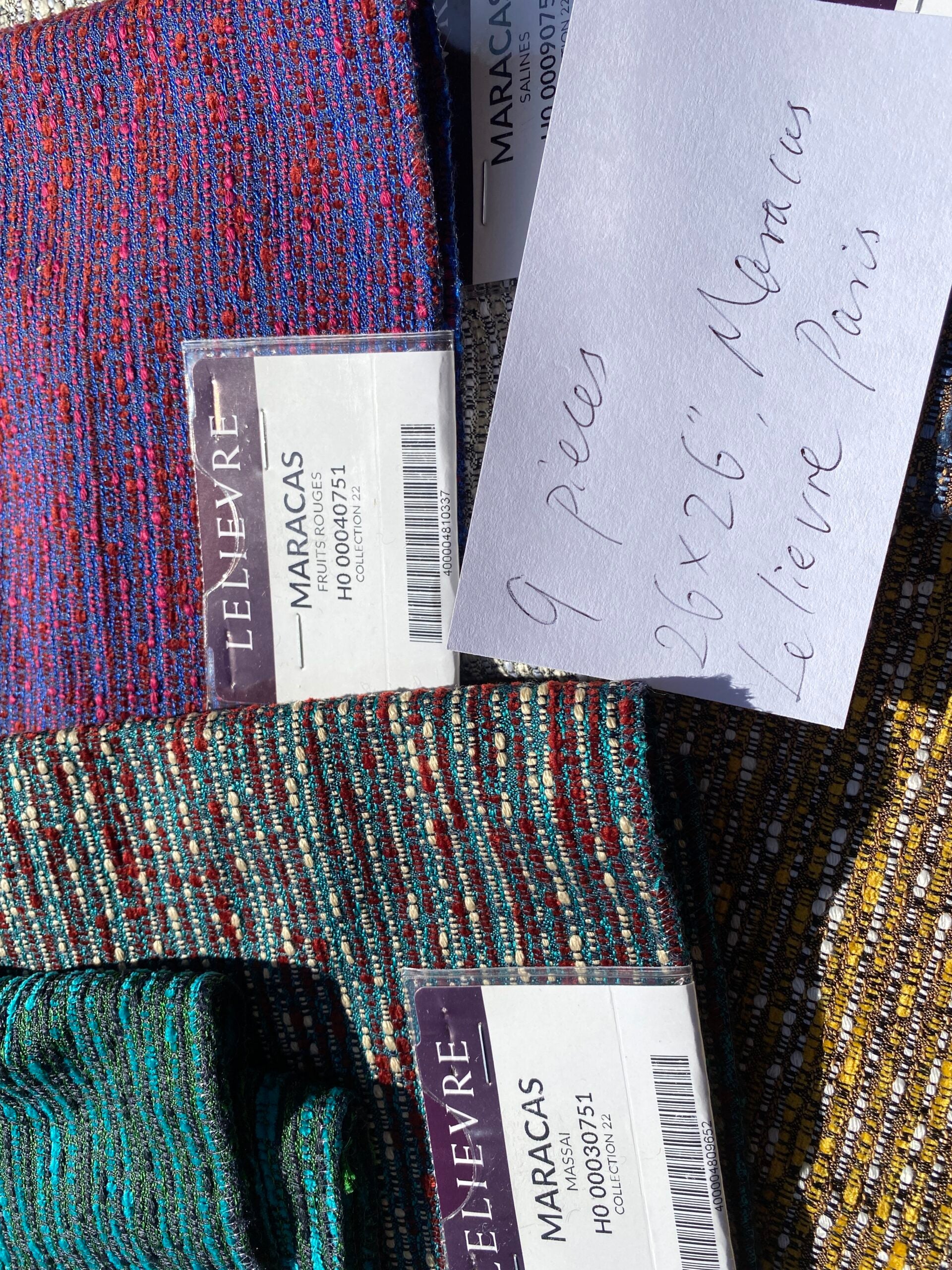 2 Berkbox105 Square Scalamandre Lelievre Paris Maracas Strie Small Scale Texture – 9 Pieces with different colors 26″width 26″ Long