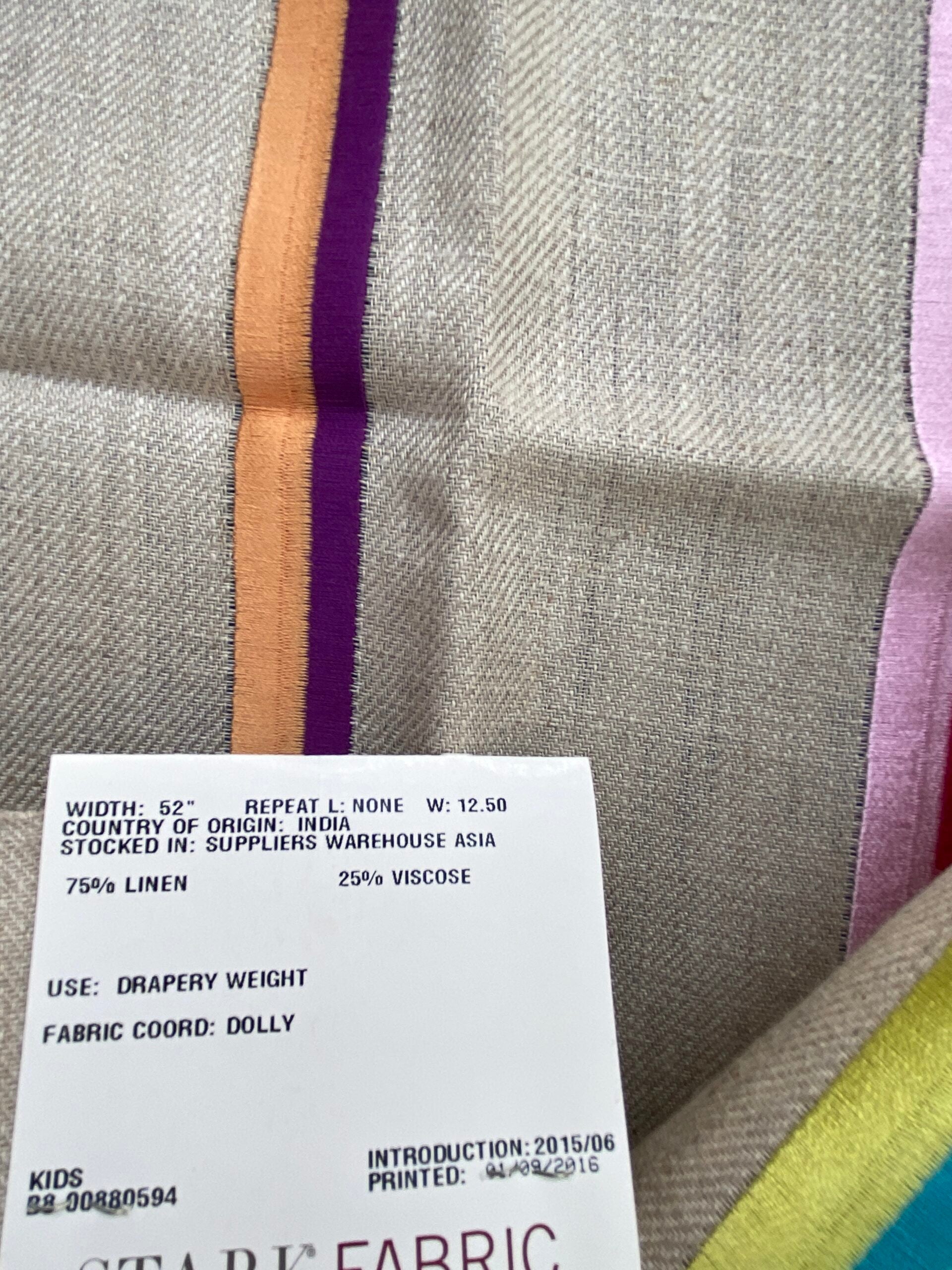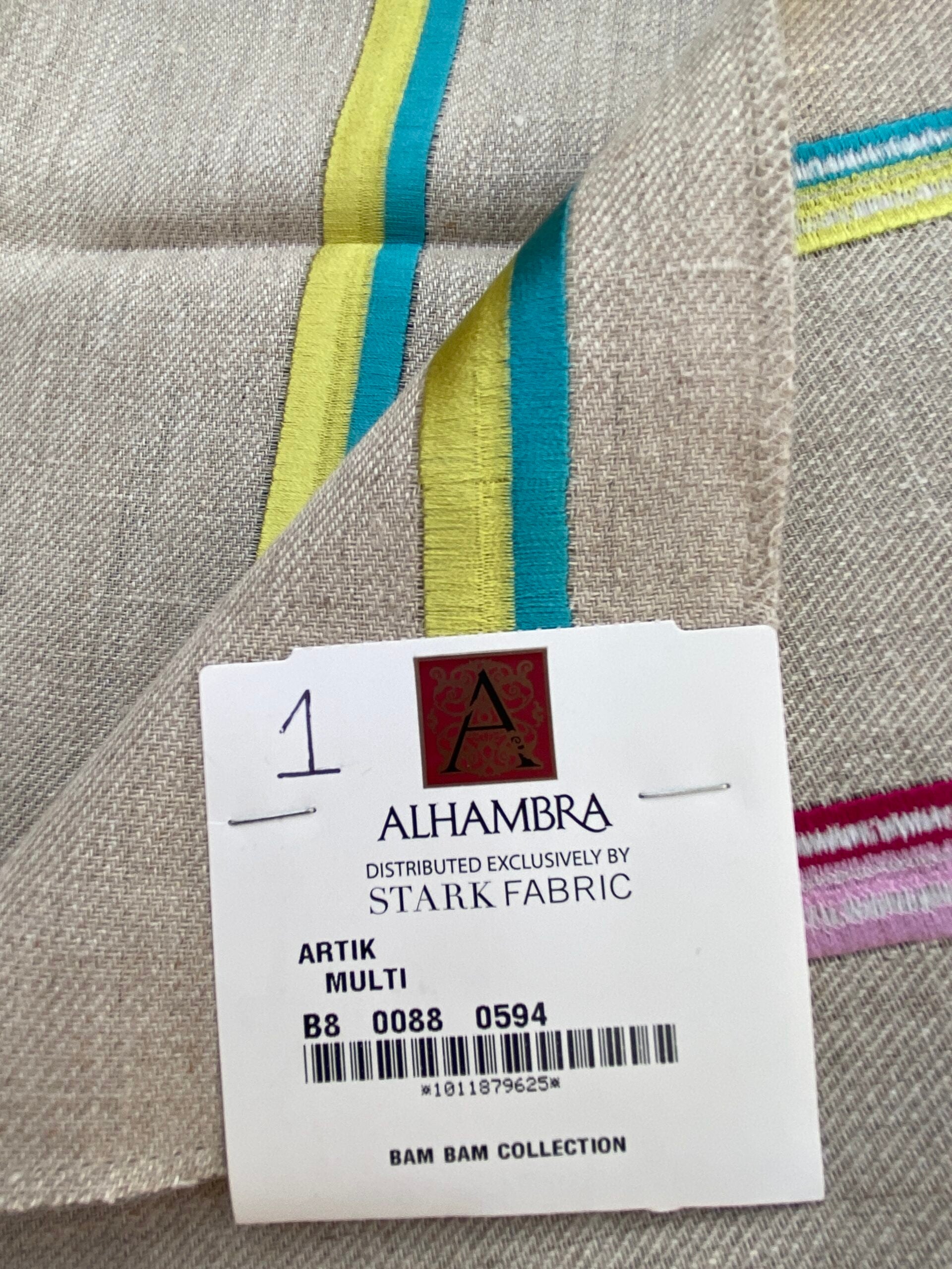 2 Berkbox75 Square Embroidery by Alhambra Altik Multi Stripe Kids Nursery on Beige MSRP USD 300+/Y