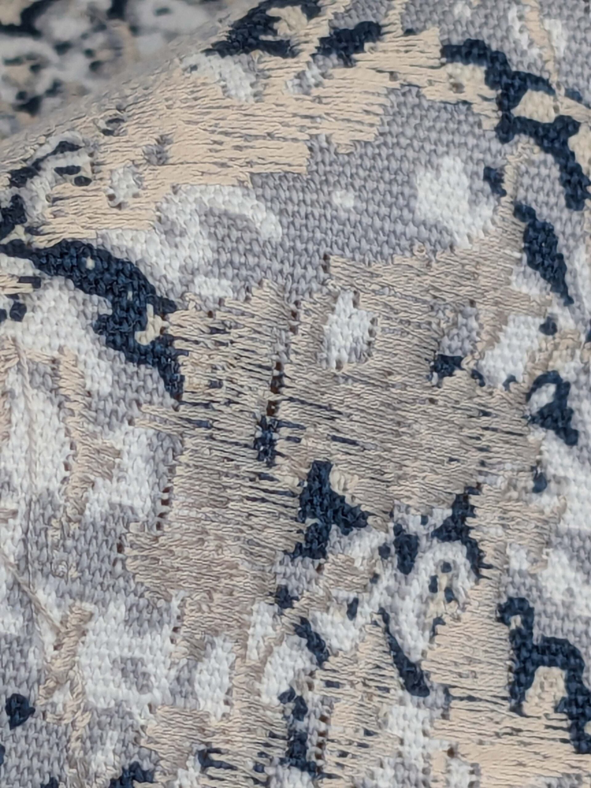 20 EV44 1.2yd x 51"w Scalamandre Komodo Modern Nature Carbon Gray Blue Beige Embroidery Print Abstract