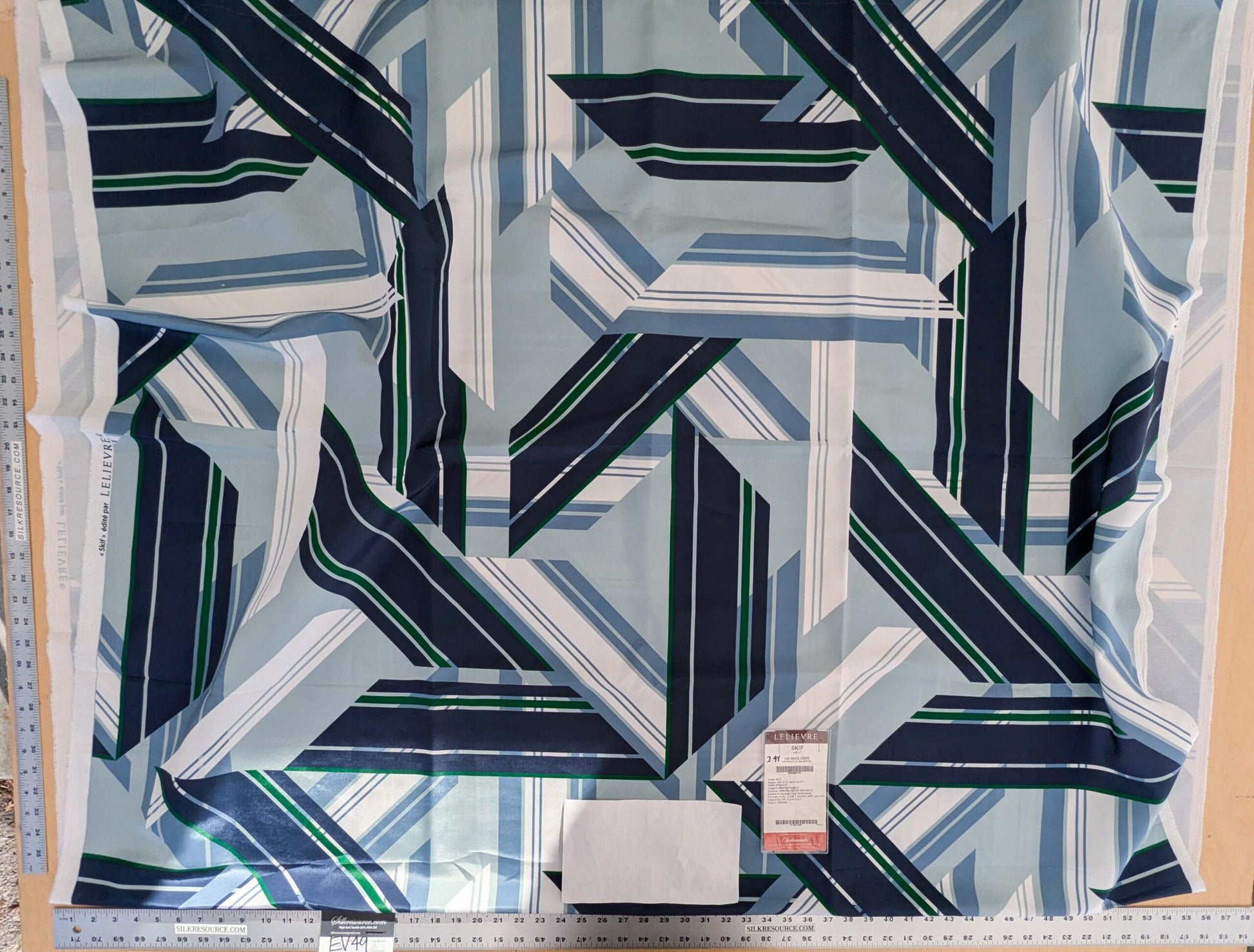 2.4y x 53"w Scalamandre Lelievre Paris Skif Yacht Blue White Green Polyester Geometric Graphic MSRP USD436/y 21-Ev49