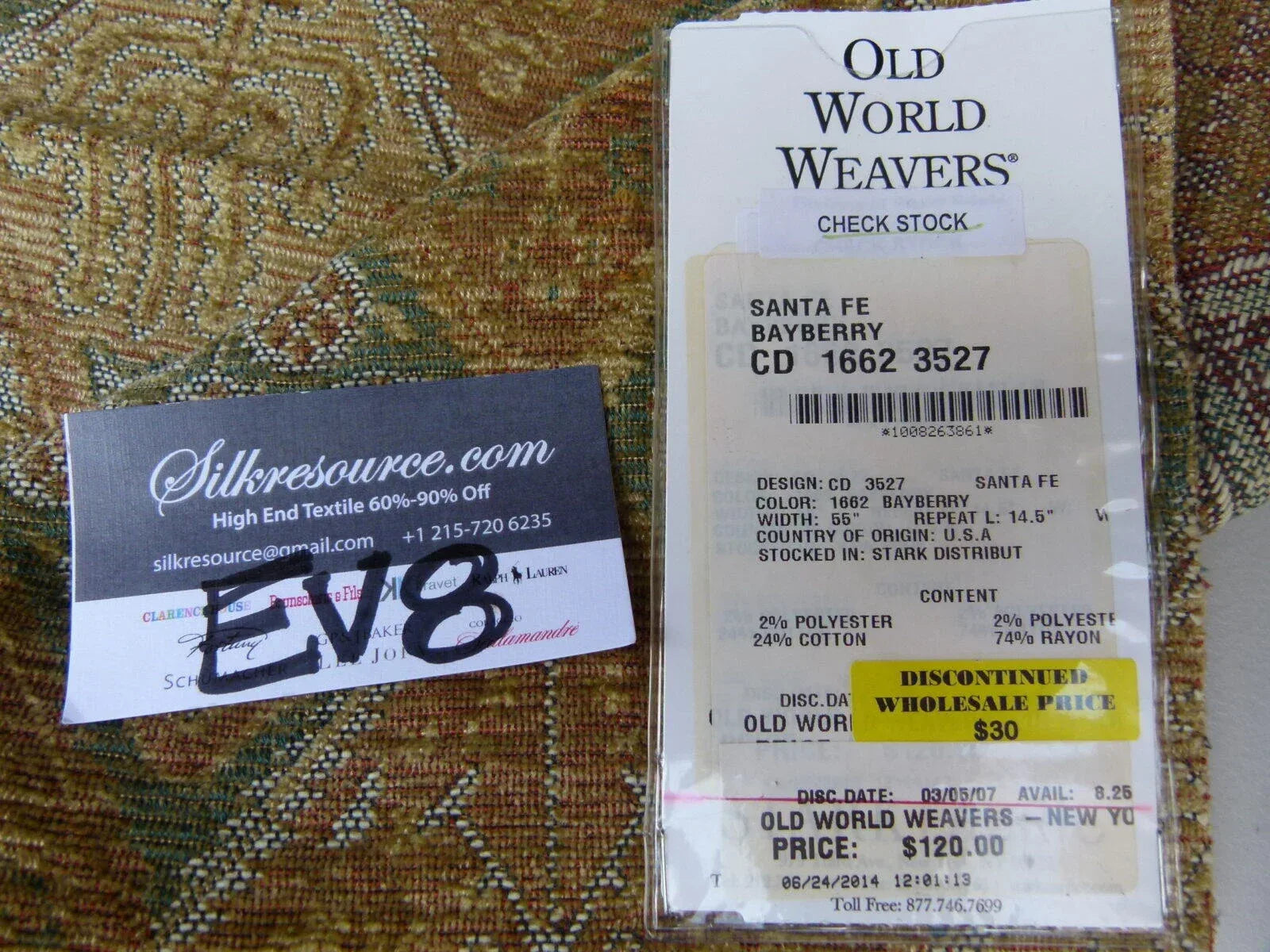 Fiber, repeat, width, weight, country of origin, WHOLESALE price/yard: