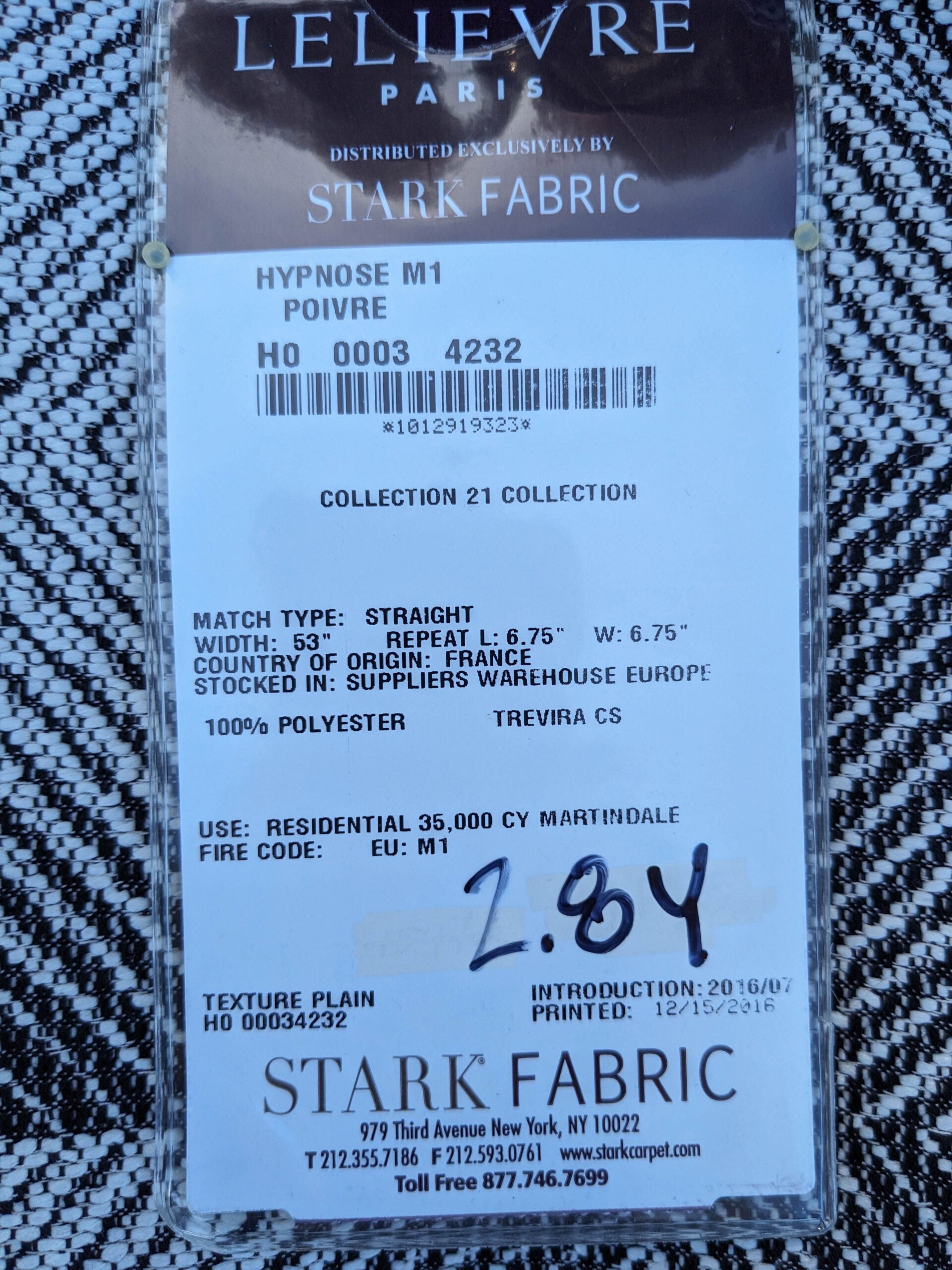 Fiber, repeat, width, weight, country of origin, WHOLESALE price/yard: