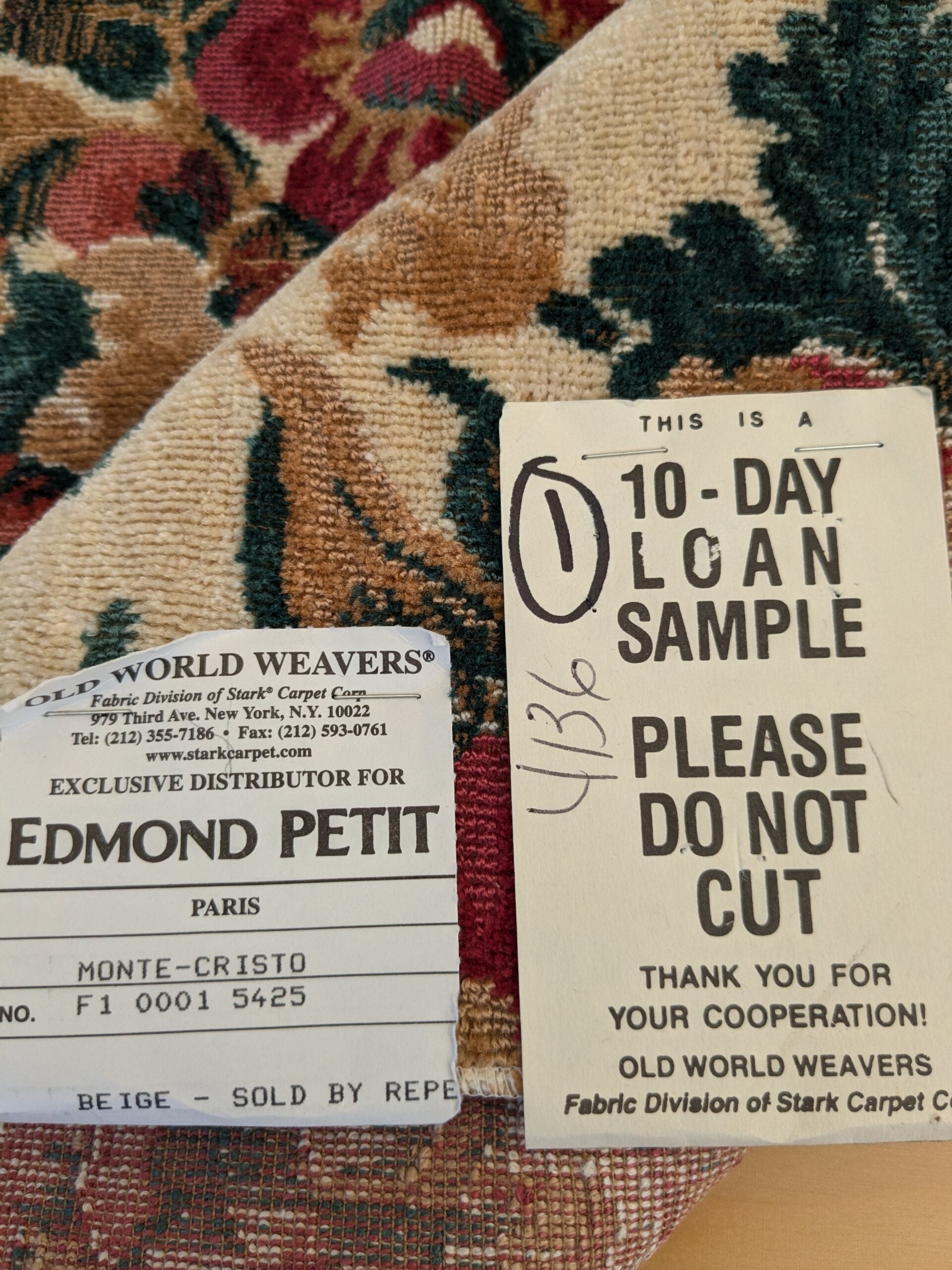 22 EV46 Velvet Square 24"x 25" Scalamandre Edmon Petit Old World Weavers Monte Cristo Cotton Floral Botanical