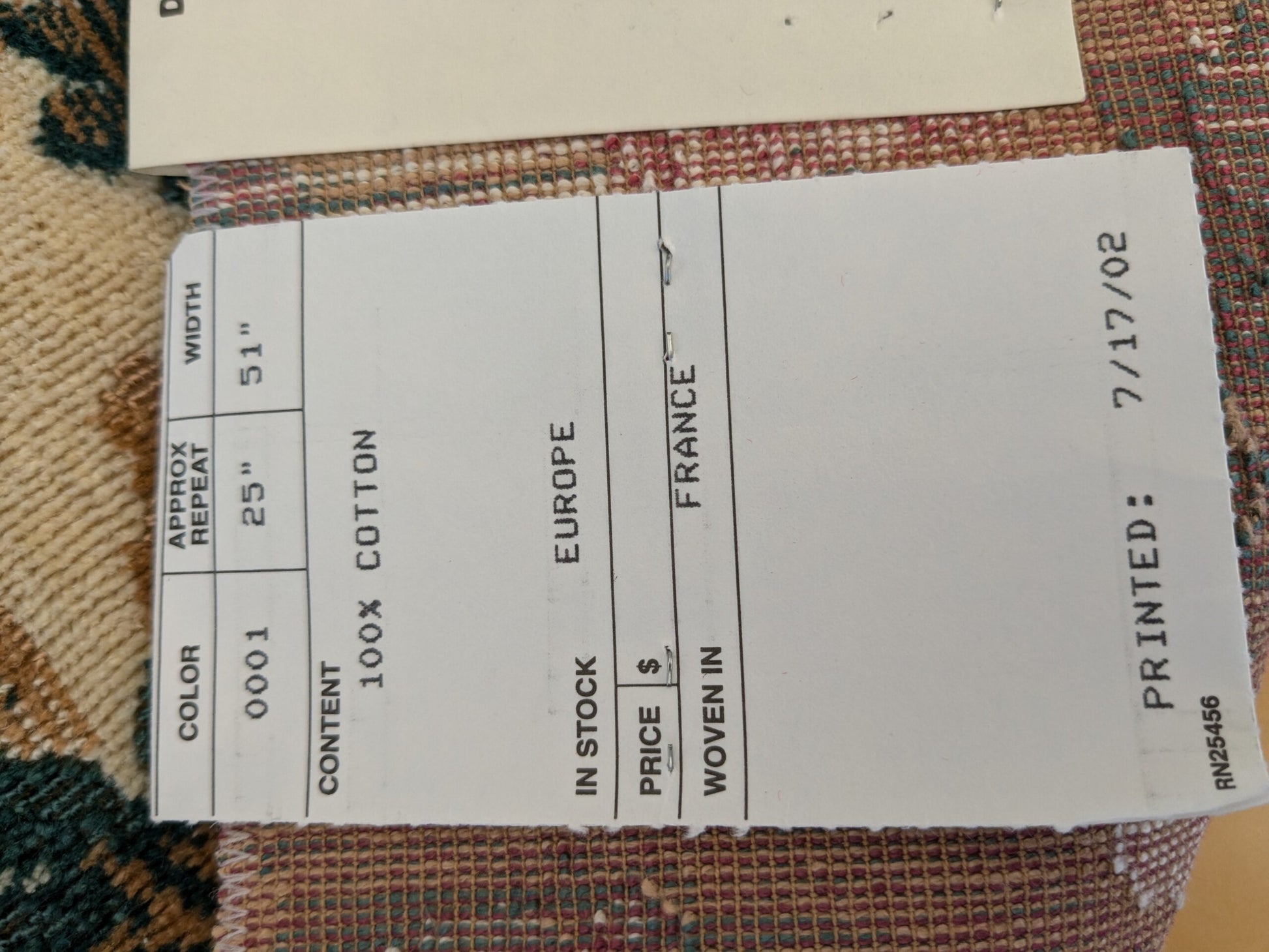 Fiber, repeat, width, weight, country of origin, WHOLESALE price/yard: