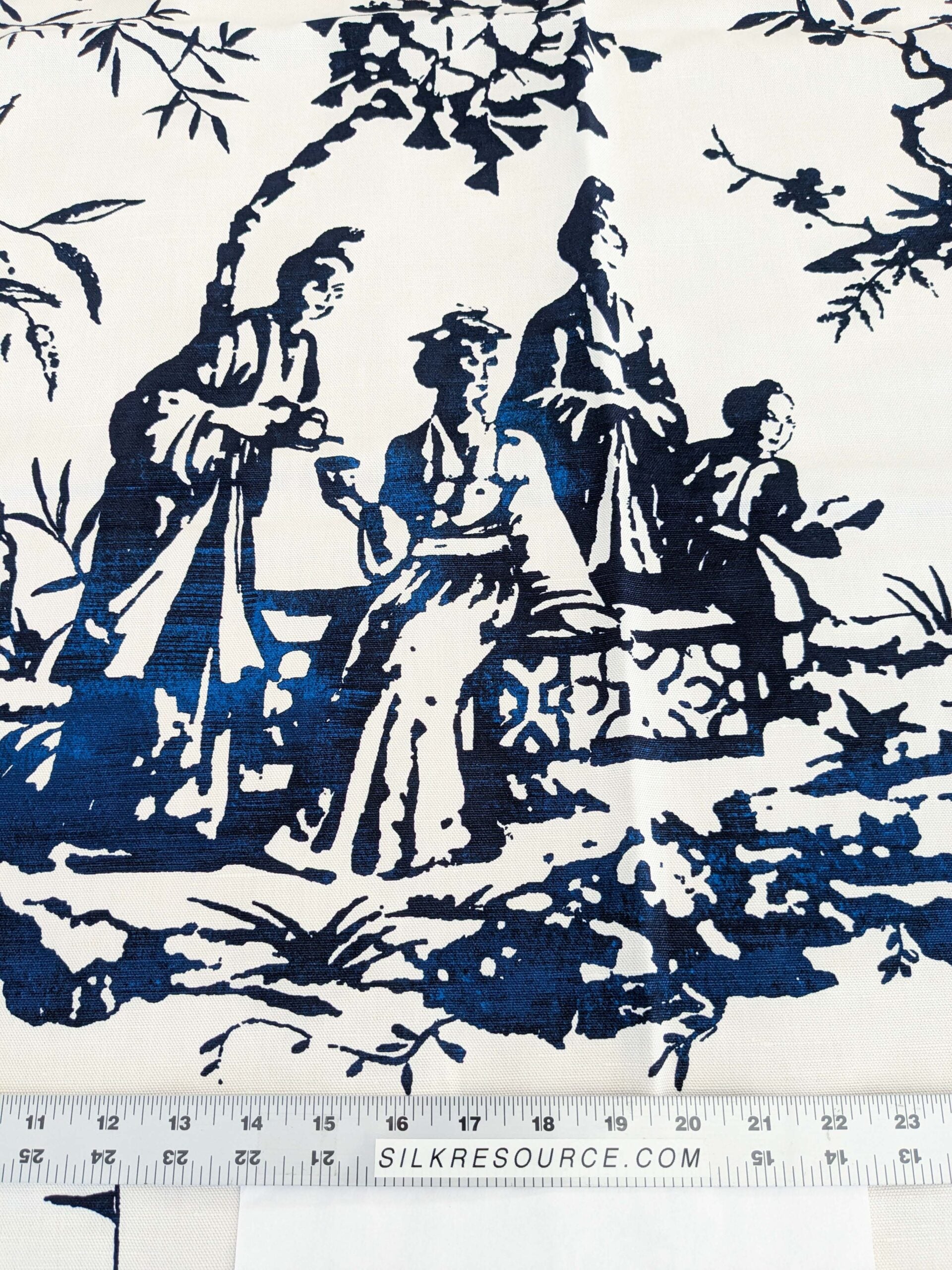 1.2y x 66"w Scalamandre Summer Palace Porcelain Blue White Chinoiserie Scenic Toile MSRP USD 262/y 22-Ev49