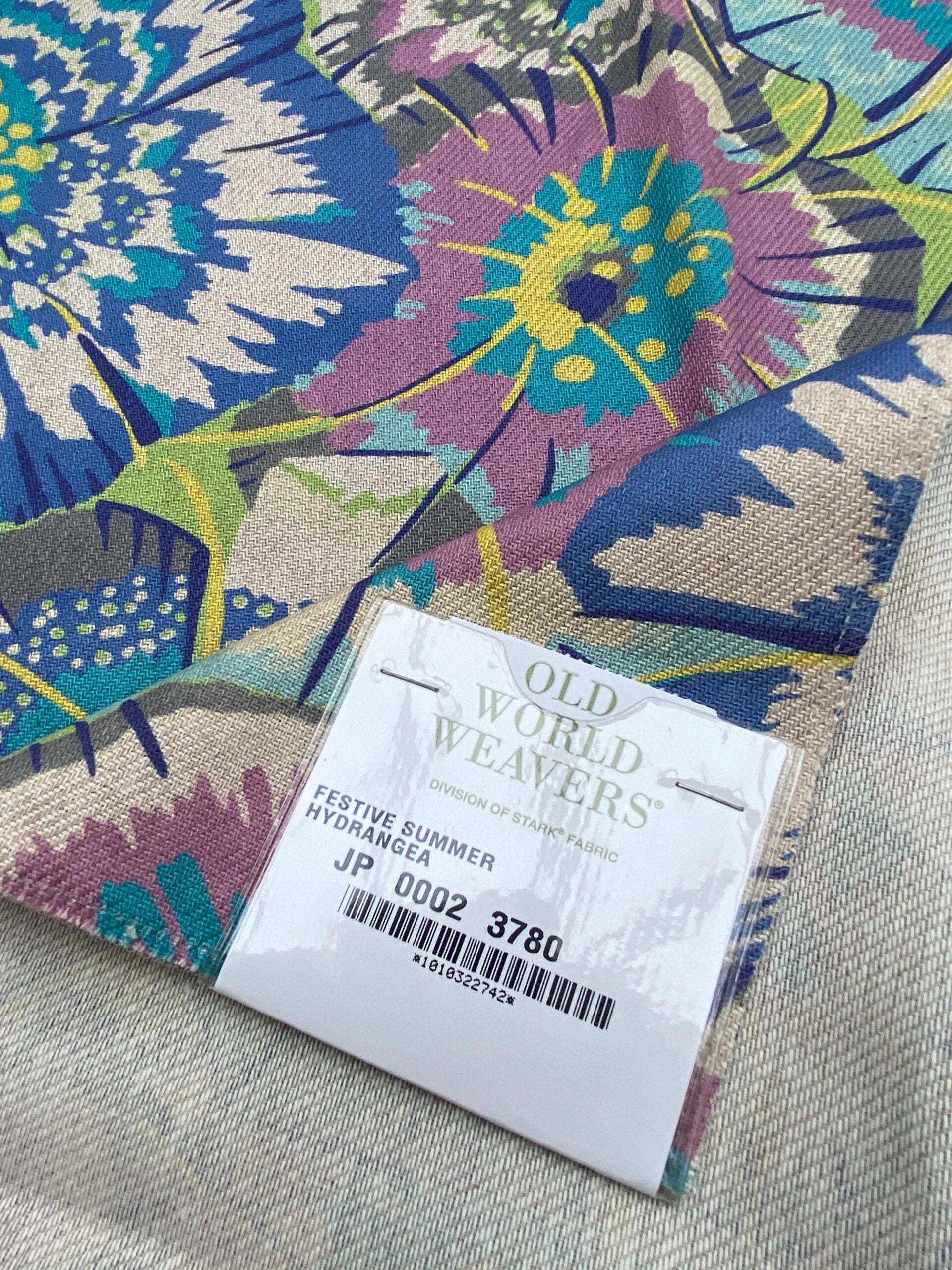 24 Berkbox77 Square Printed Fabrics by Old World Weavers Festive Summer Hydrangea Blue Pink Botanical Linen Cotton MSRP USD 300+/y