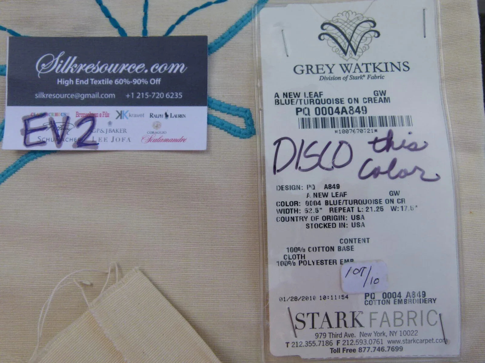 24 Ev2 1.2y Scalamandre A New Leaf Blue On Beige Cotton
