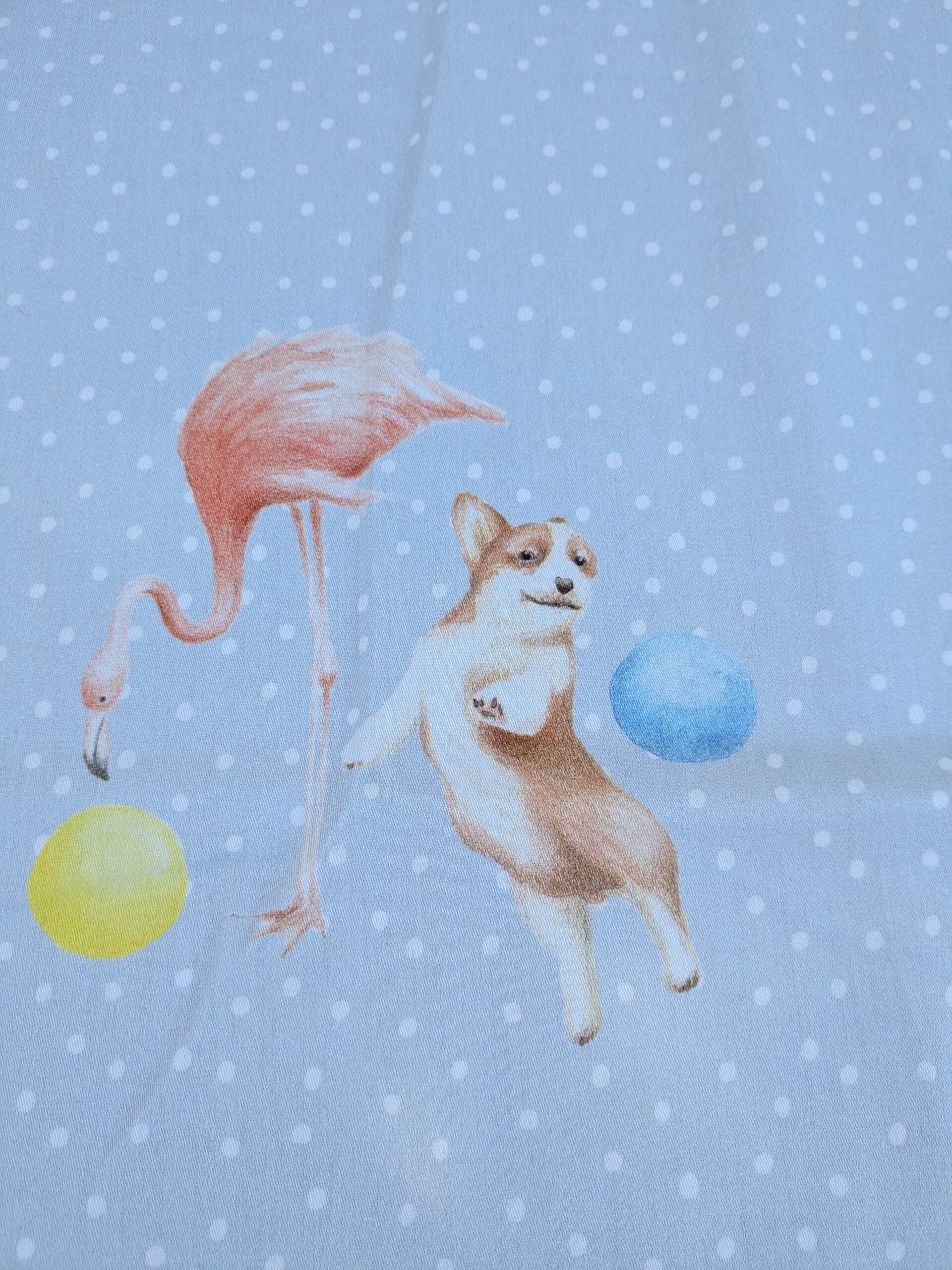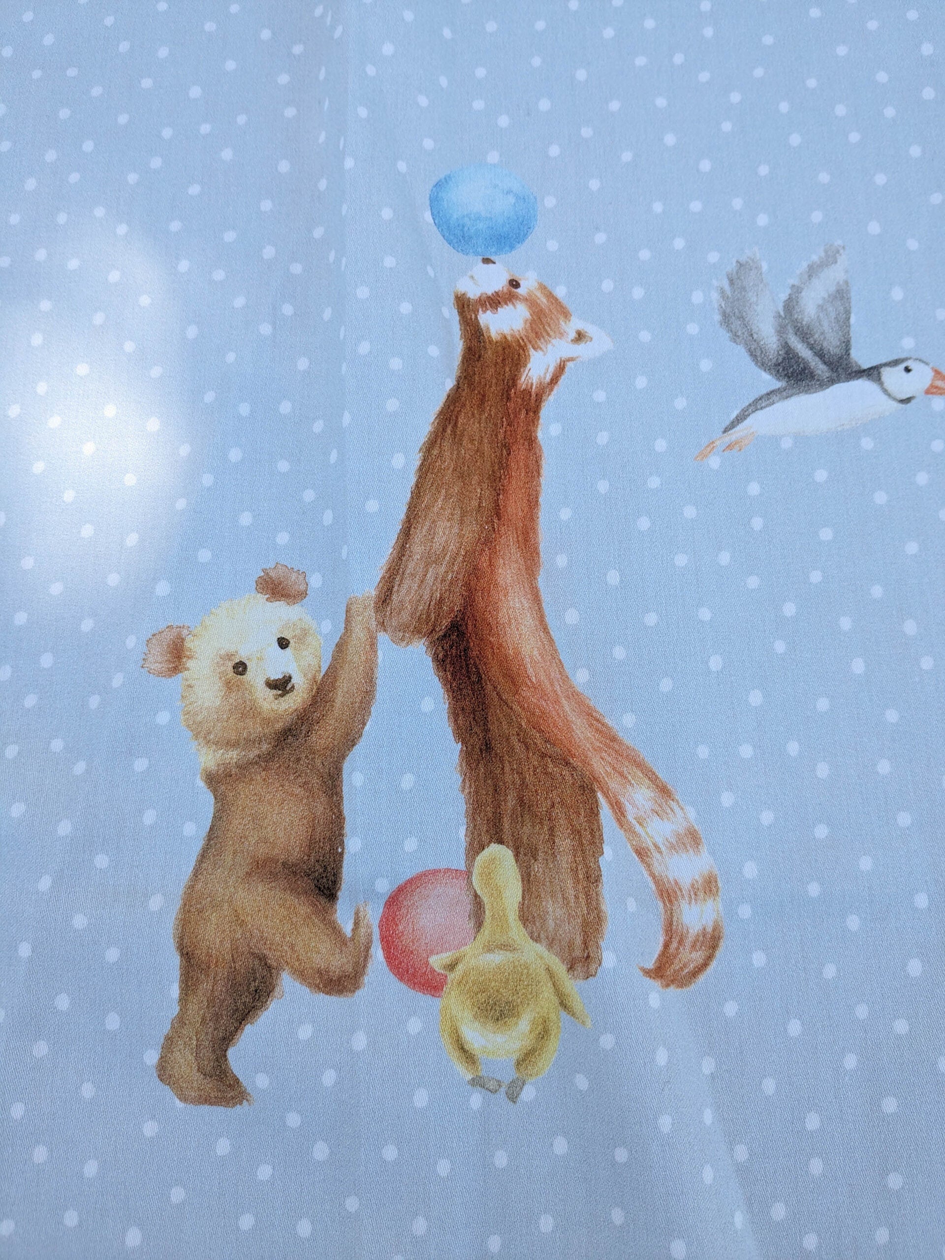 24 EV35 Length 1.3y Christian Fischbacher Mignon Blue Multi Animals Birds Panda Fox Elephant Cotton MSRP USD 300+/y