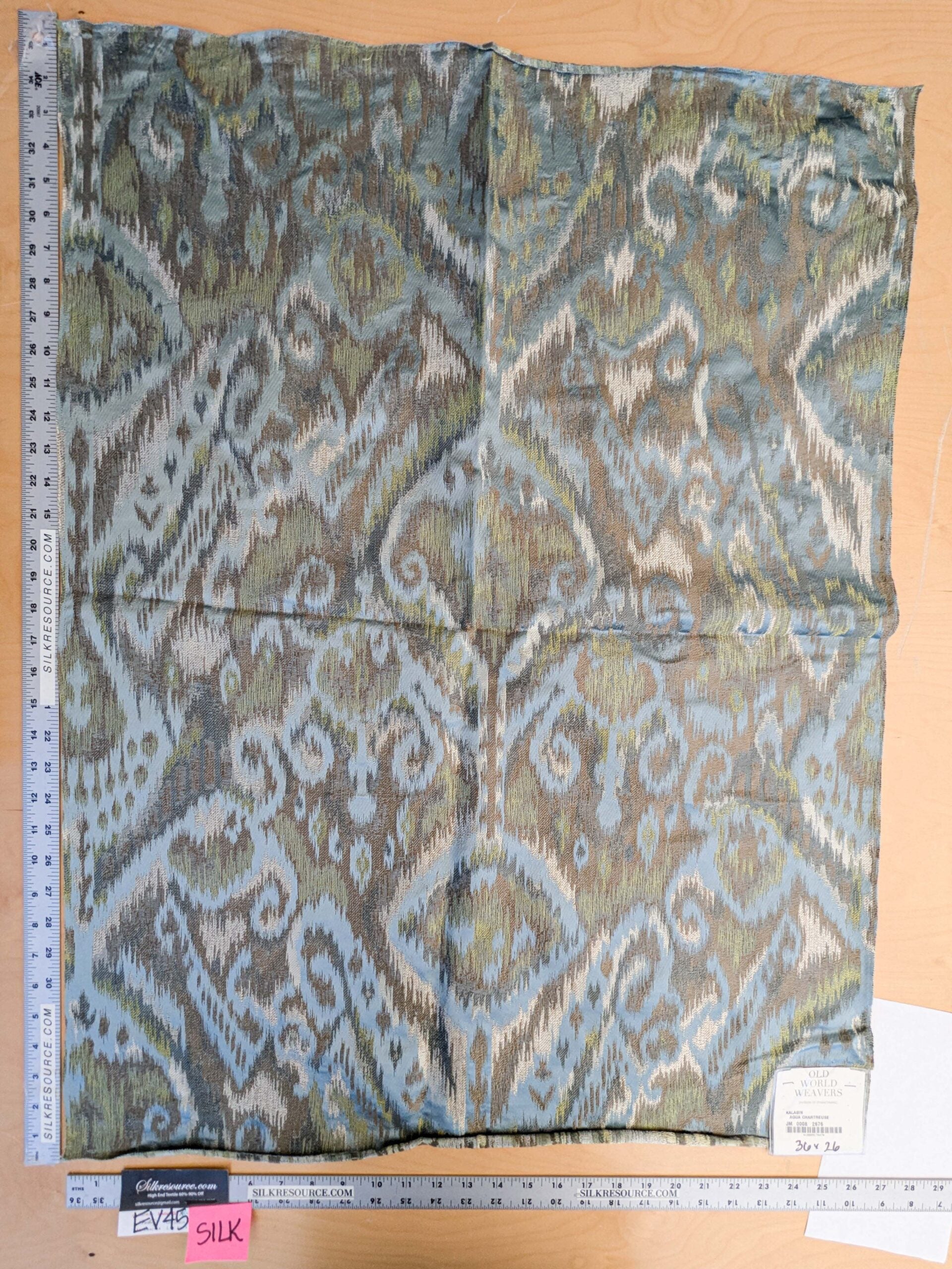 24 EV45 Silk Square 36" x 26" Scalamandre Kalasin Aqua Chatreus Old World Weavers Silk Ikat MSRP USD 624/Y