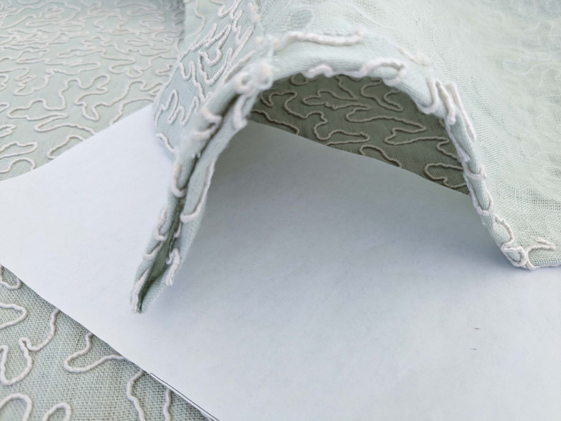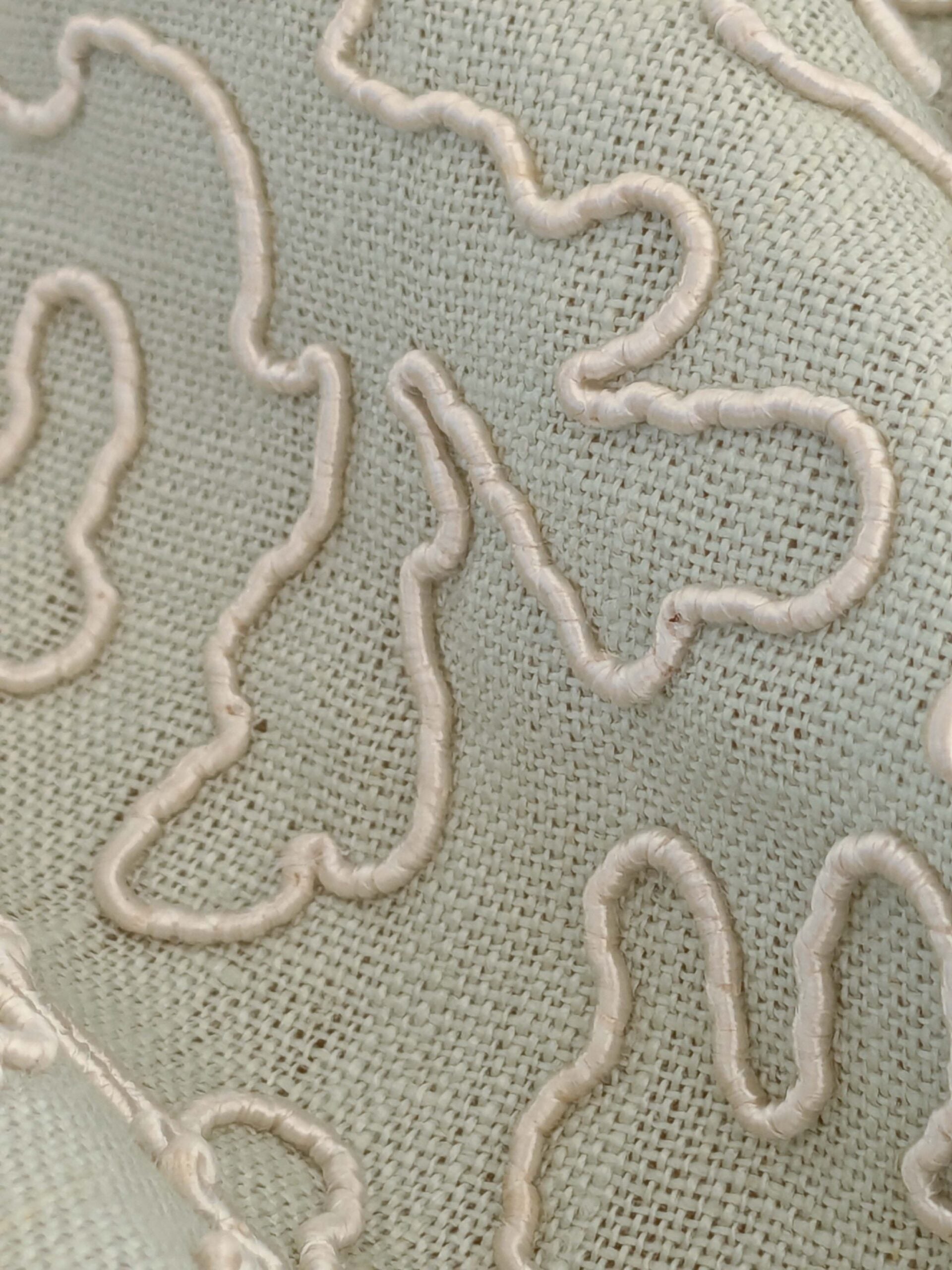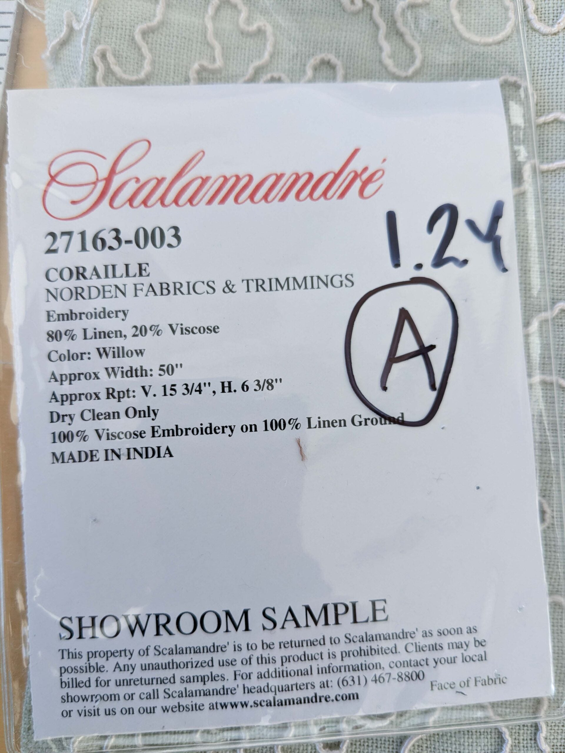 1.2y x 50" Scalamandre Coraille Willow Light Green Embroidery Linen Abstract MSRP USD314/y 24-Ev49
