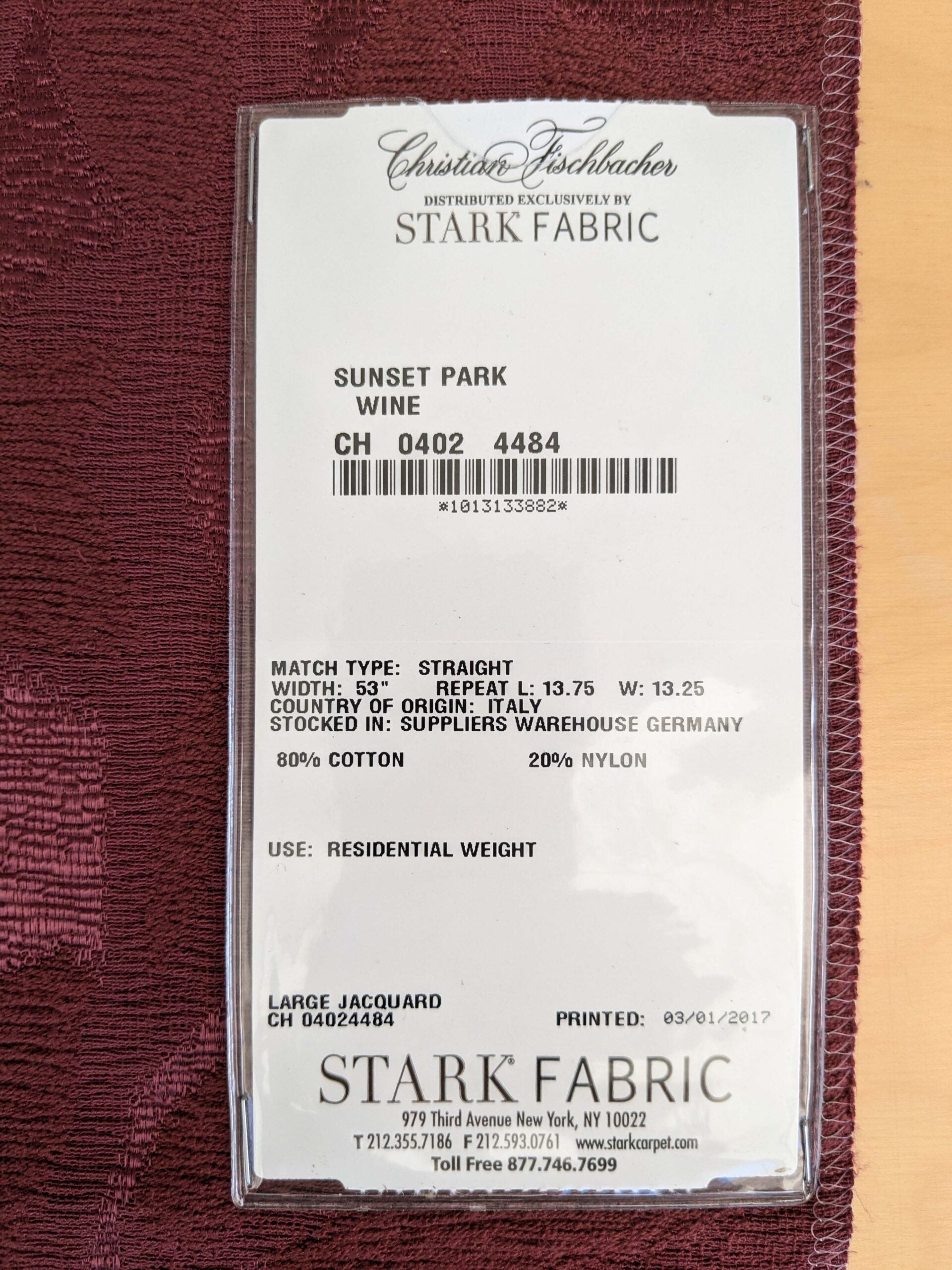 24 EV53 Square Scalamandre Christian Fischbacher Sunset Park Wine Deep Red Botanical Foliage MSRP USD350+