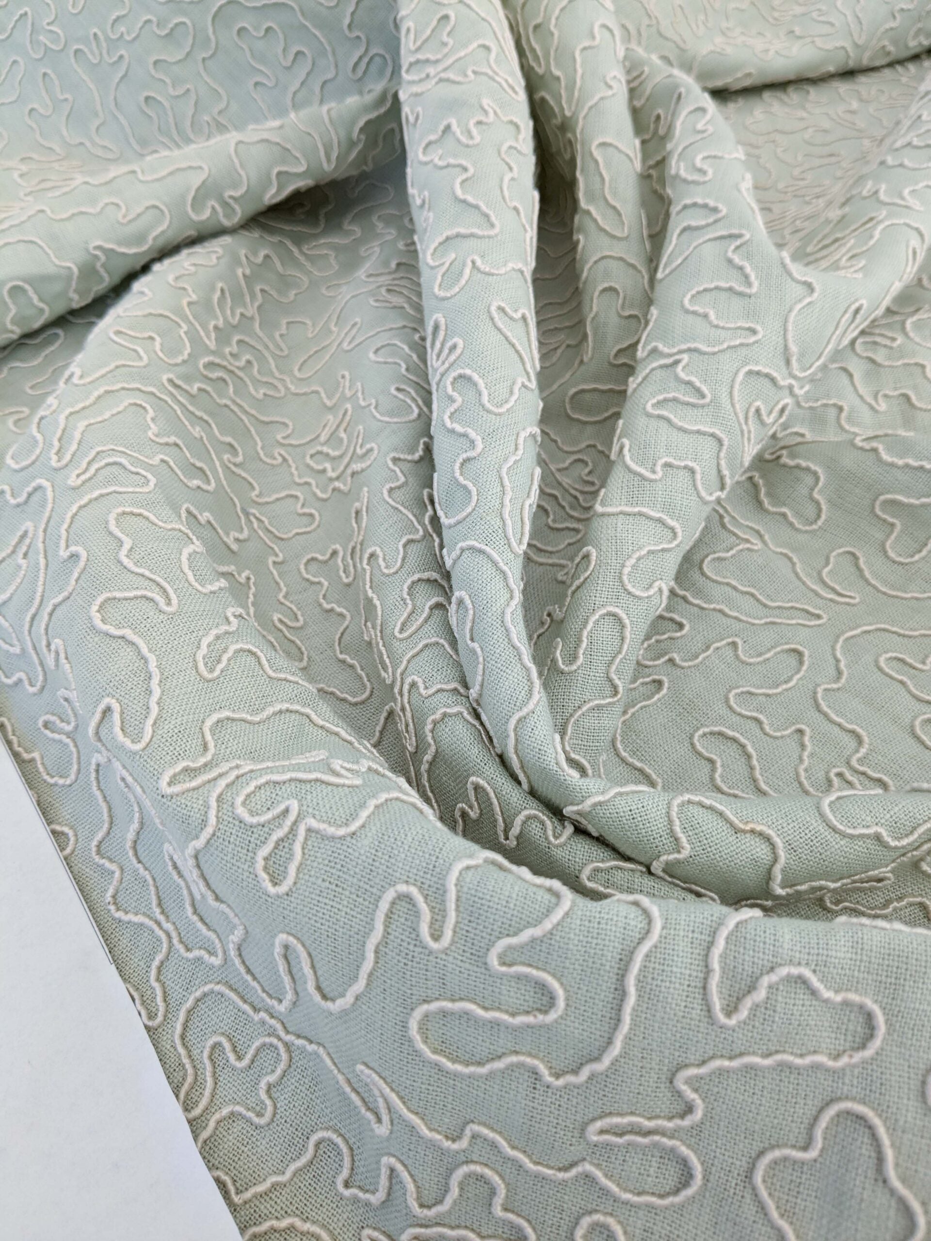 1.2y x 50"w Scalamandre Coraille Willow Light Green Embroidery Linen Abstract MSRP USD314/y Piece B 25-Ev49