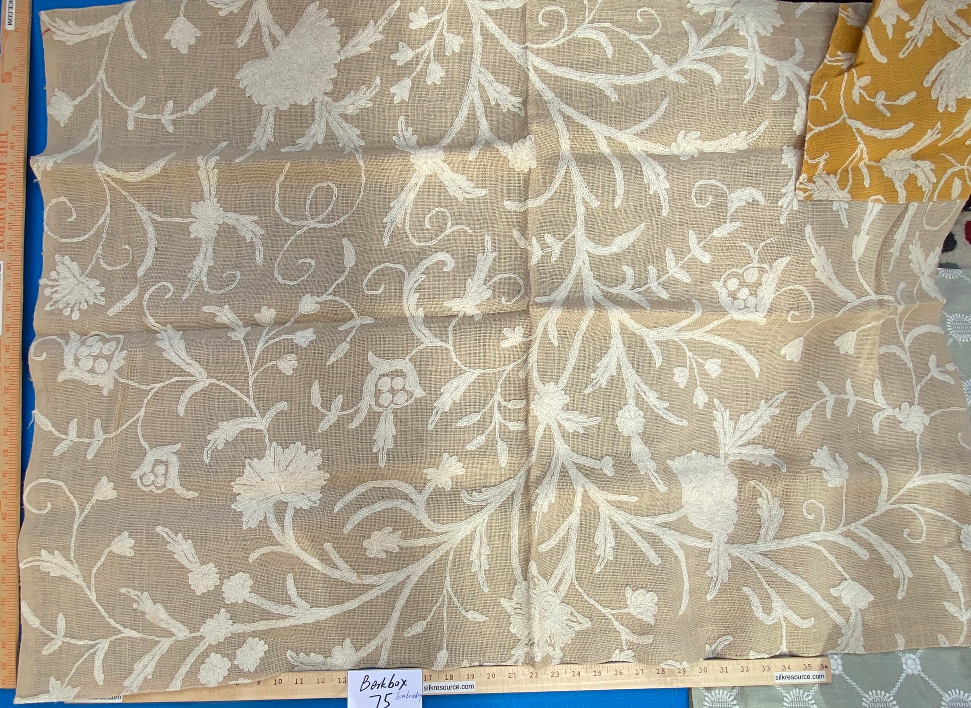 26 Berkbox75 Square Embroidery by Old World Weavers Balik Natural Wool Crewel On Jute 34" X 48" MSRP USD 304/Y
