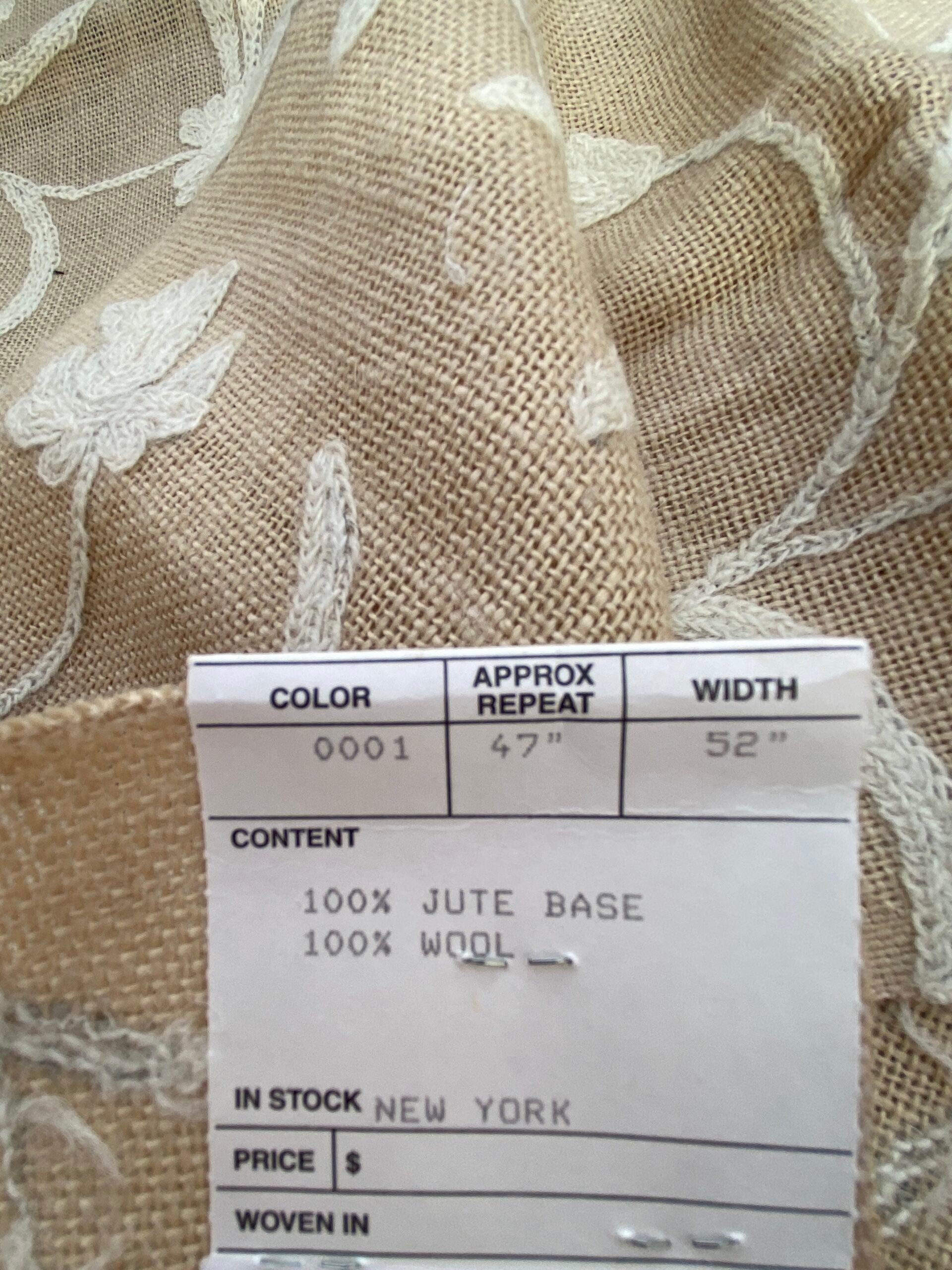 Fiber, repeat, width, weight, country of origin, WHOLESALE price/yard: