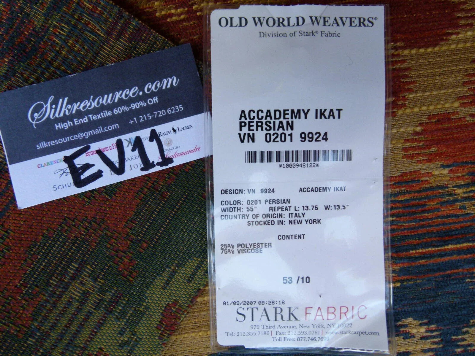 Fiber, repeat, width, weight, country of origin, WHOLESALE price/yard: