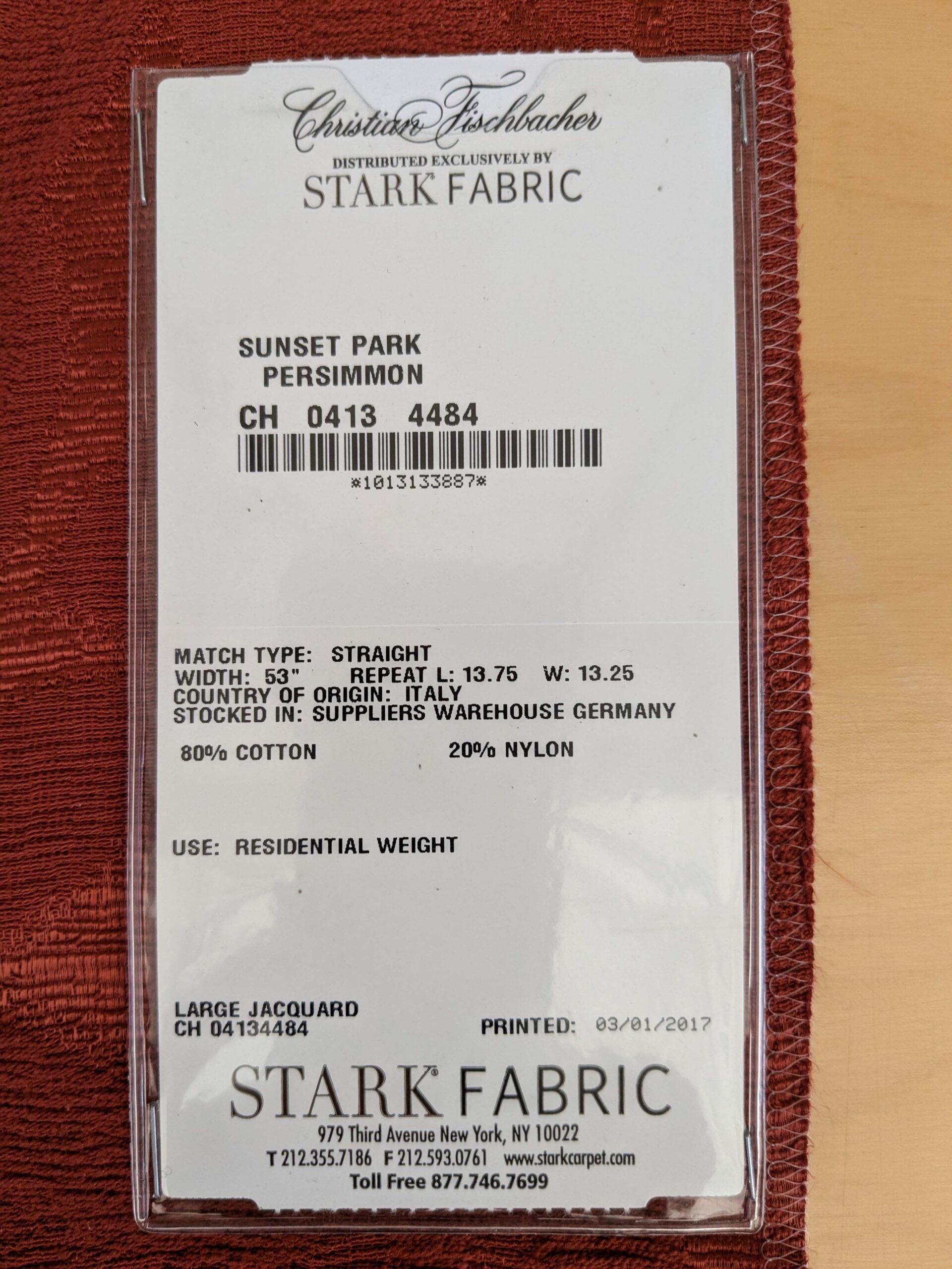 Fiber, repeat, width, weight, country of origin, WHOLESALE price/yard: