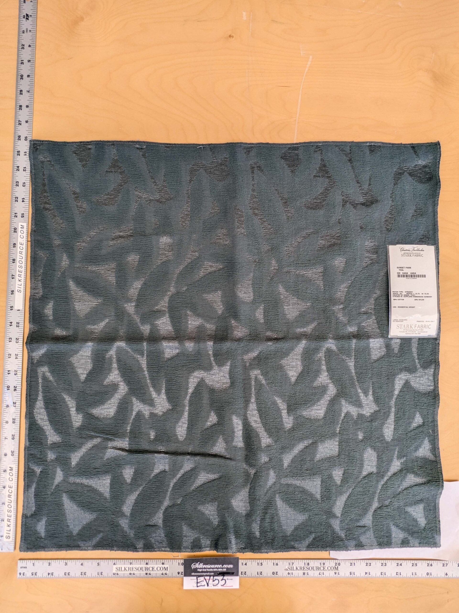 27 EV53 Square Scalamandre Christian Fischbacher Sunset Park Teal Blue Botanical Foliage MSRP USD350+