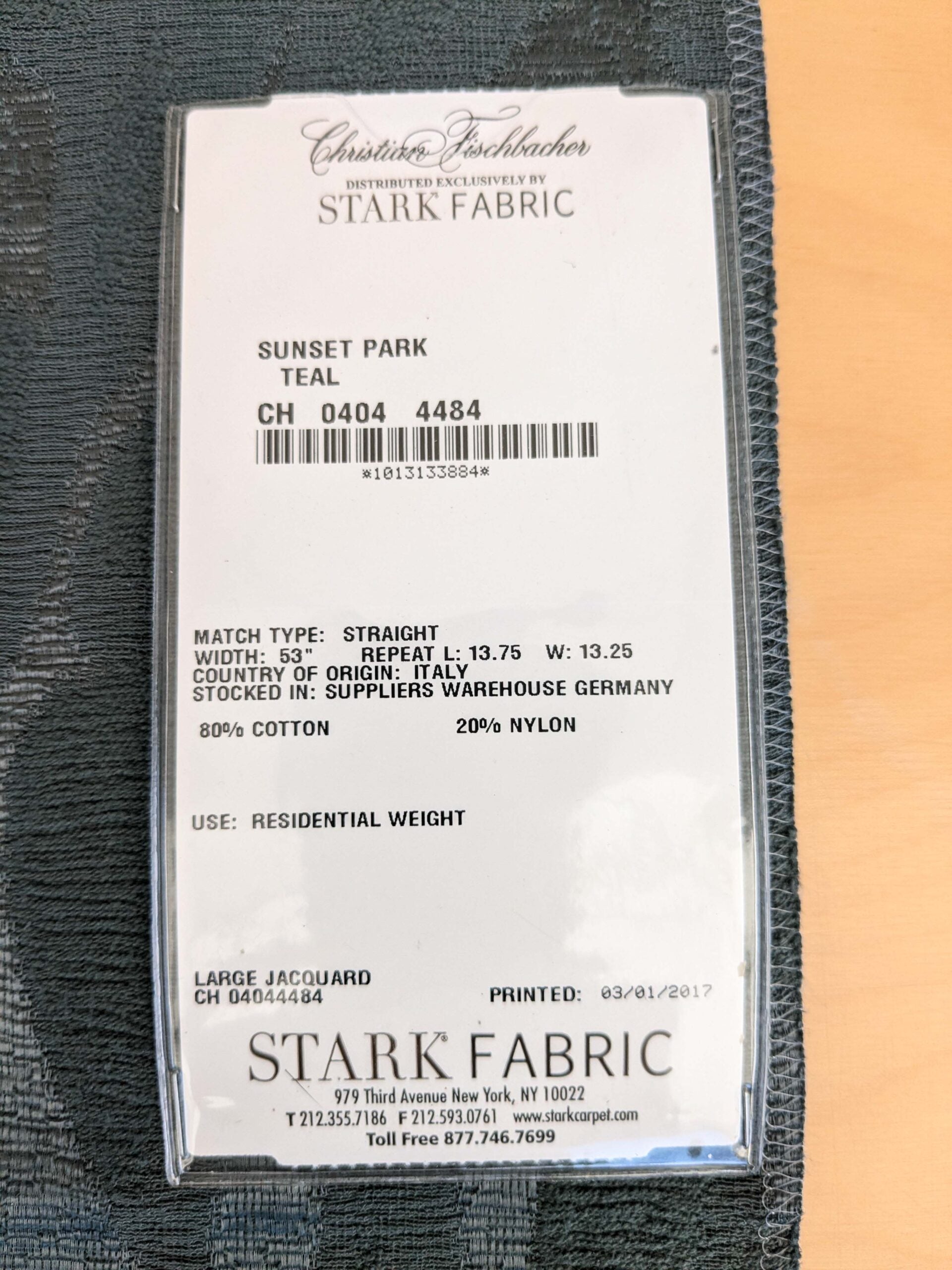 Fiber, repeat, width, weight, country of origin, WHOLESALE price/yard: