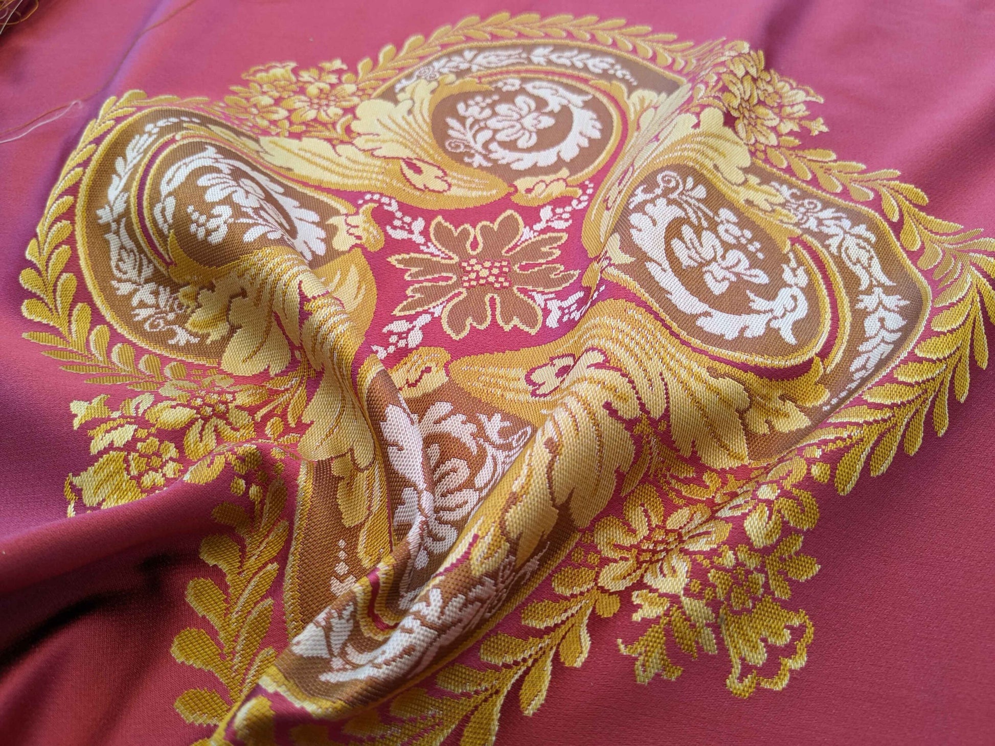 26" x 51" Scalamandre Fauteuil Bessieres Seat & Back Rouge Red Gold French Antique Design Medallion MSRP USD 612/y
