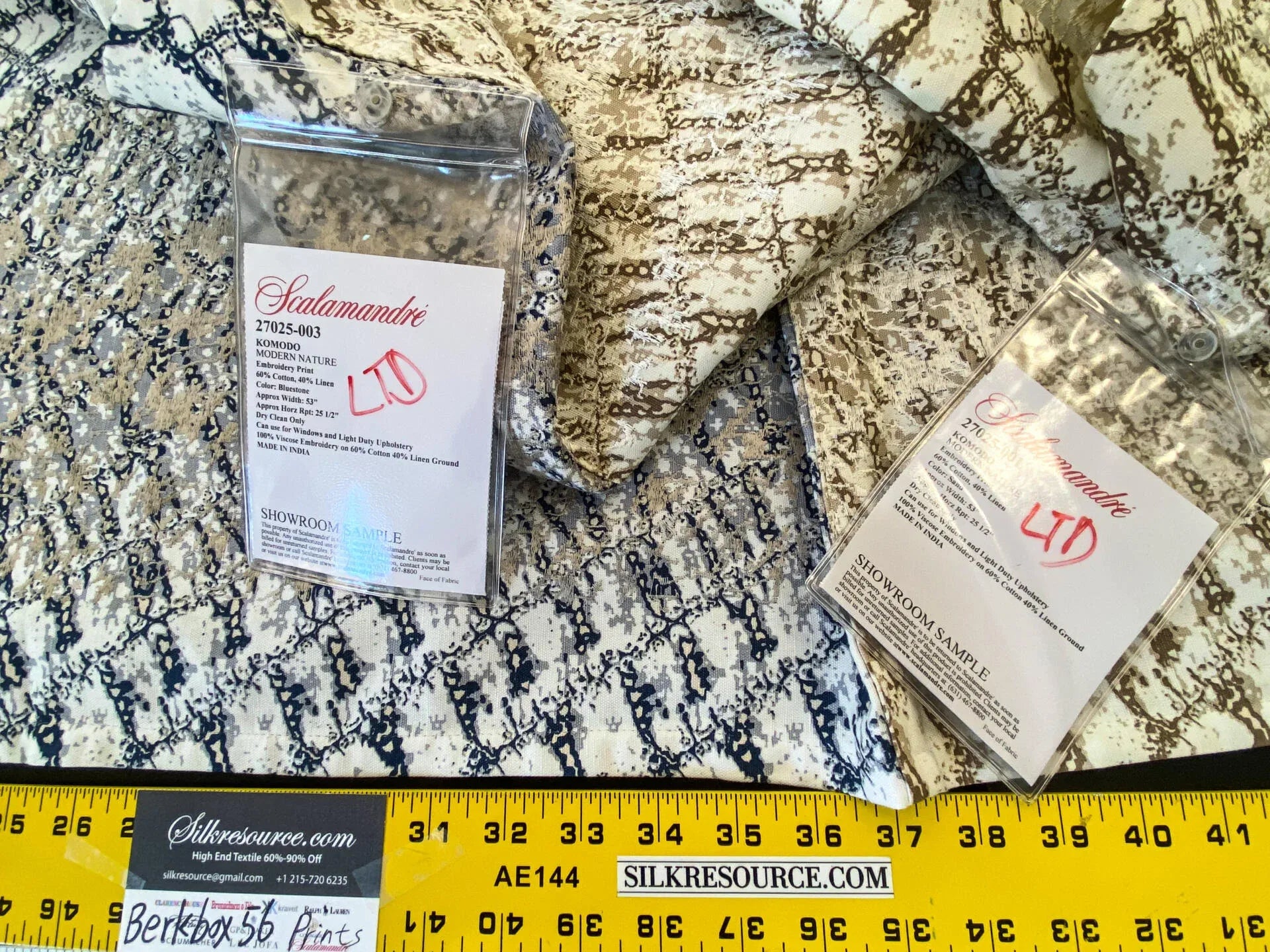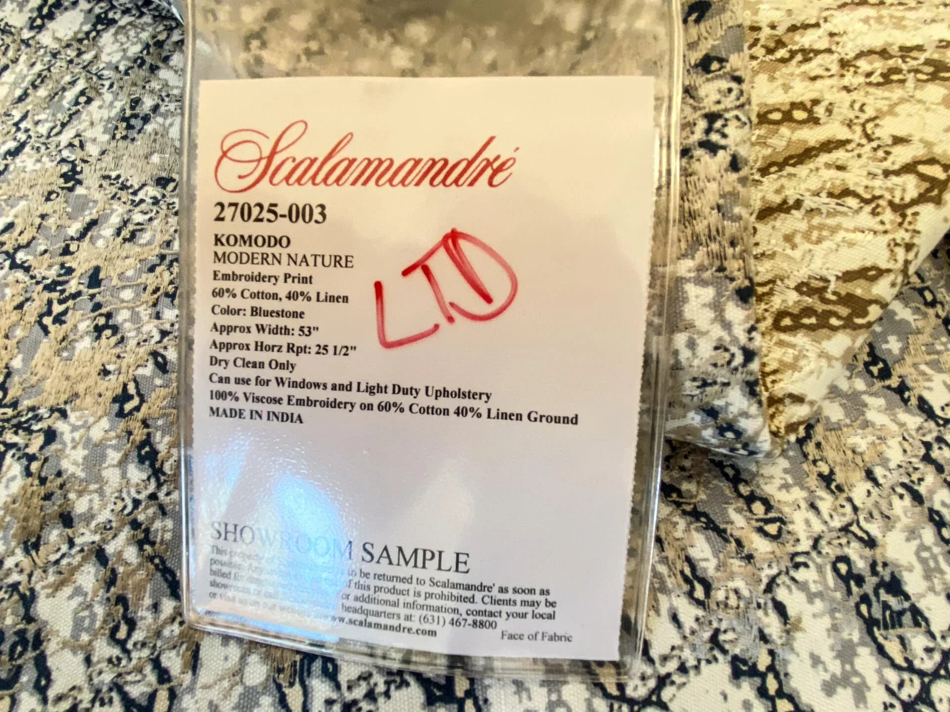 27 Berkbox56 2.4yard 2 pieces & 2 colorways Scalamandre Komodo Modern Nature Bluestone and Sand Embroidery Print