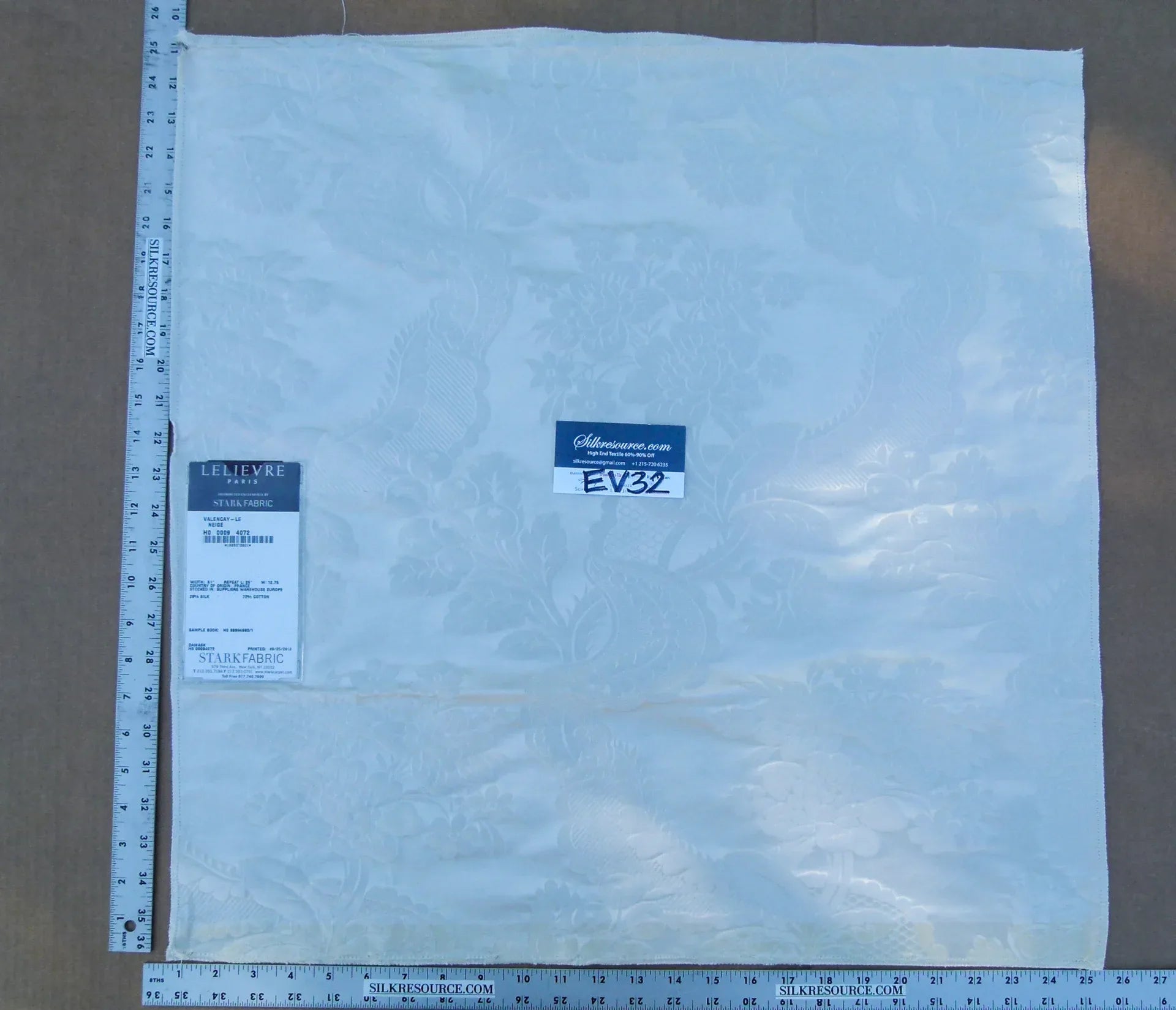 27 EV32 Square 25 x 25 inches Scalamandre Lelievre Paris Valencay - Le Eglantine White Silk Damask Floral