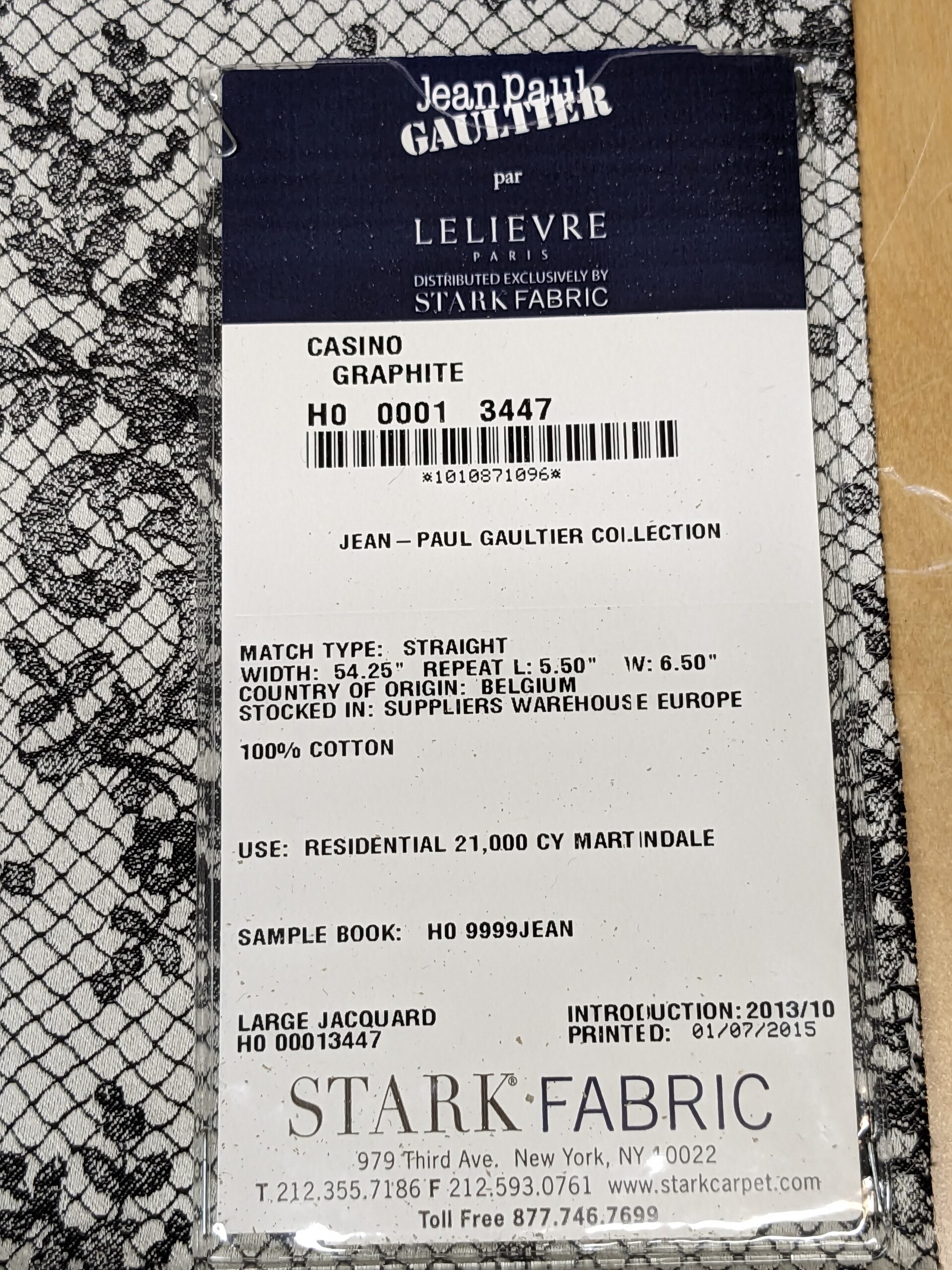 27 EV34 Special Square Jacquard by Lelievre Paris Casino Graphite Cotton Gray White Large Jacquard Botanical Floral MSRP USD300+/y