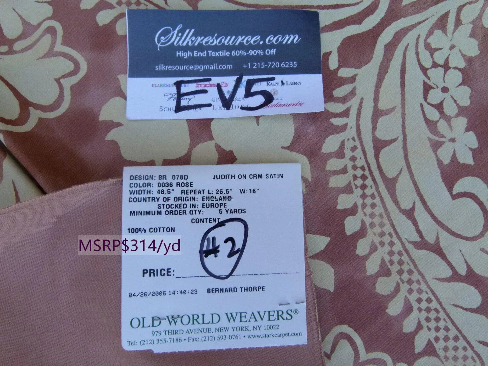 27 Ev5 33"x24"scalamandre Showroom Sample Judith On Cream Satin Rose Cotton Print MSRP USD 314/Y