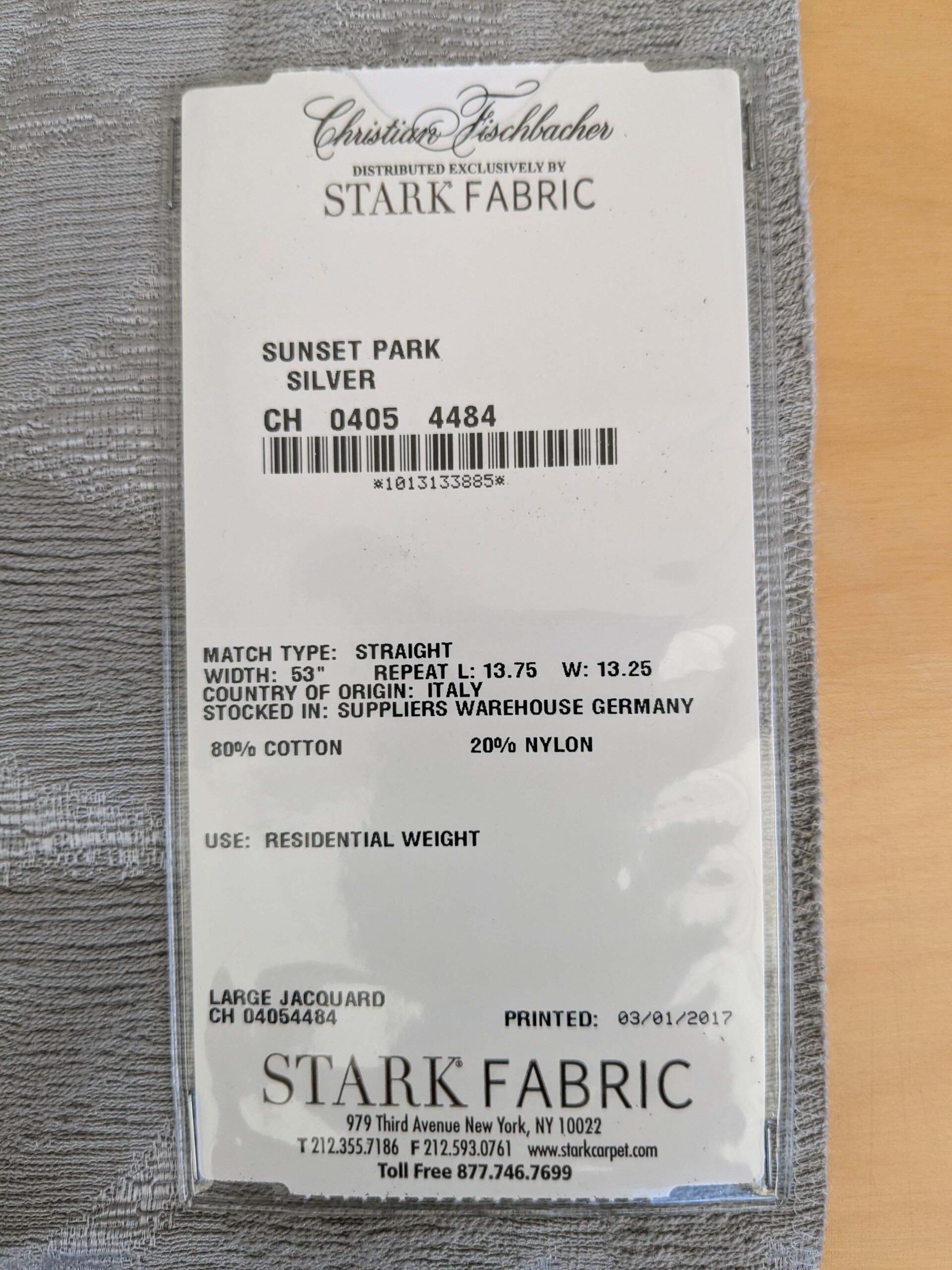 28 EV53 Square Scalamandre Christian Fischbacher Sunset Park Silver Gray Botanical Foliage MSRP USD350+
