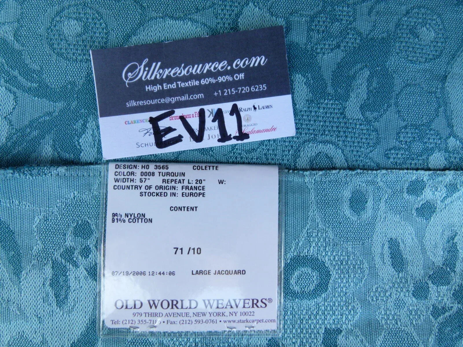 28 Ev11 Scalamandre Showroom Sample Square Colette Turquin Turquoise Blue Jacquard Reversible