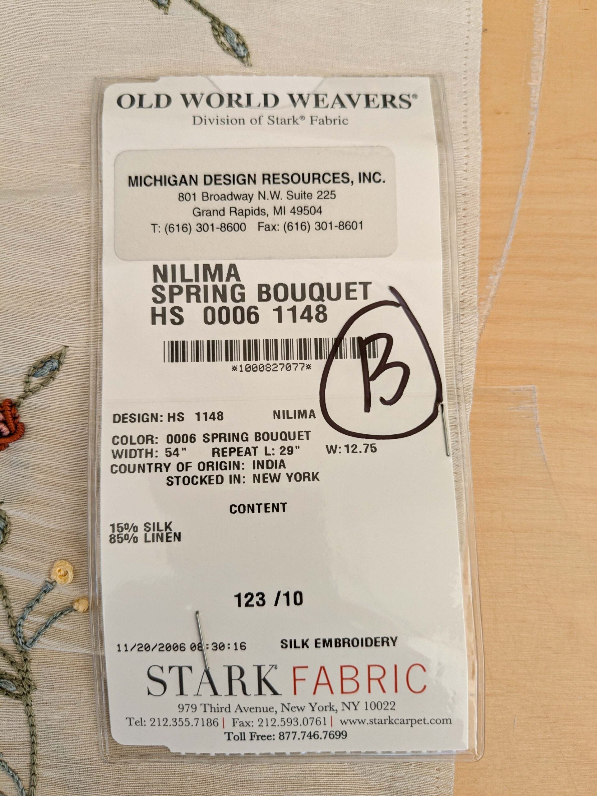 29 EV45 Silk Blend Square 25" x 27" Scalamandre Old World Weavers Nilima Spring Boquet Delicate Floral Vine Linen Silk Embroidery - Piece B