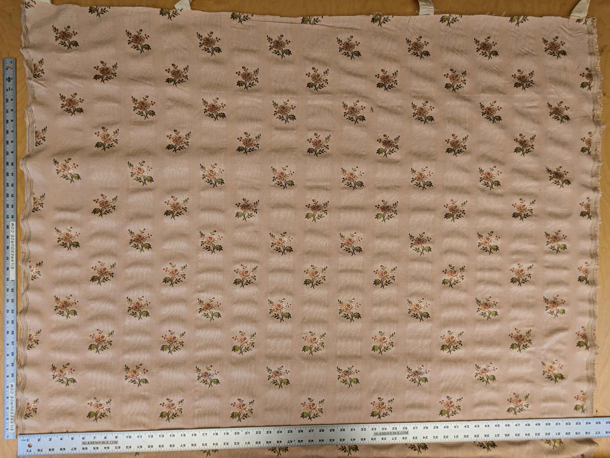 Weight: medium heavy weight silk damask. About 0.5lb/yard. Soft, yet durable enough for upholstery purpose