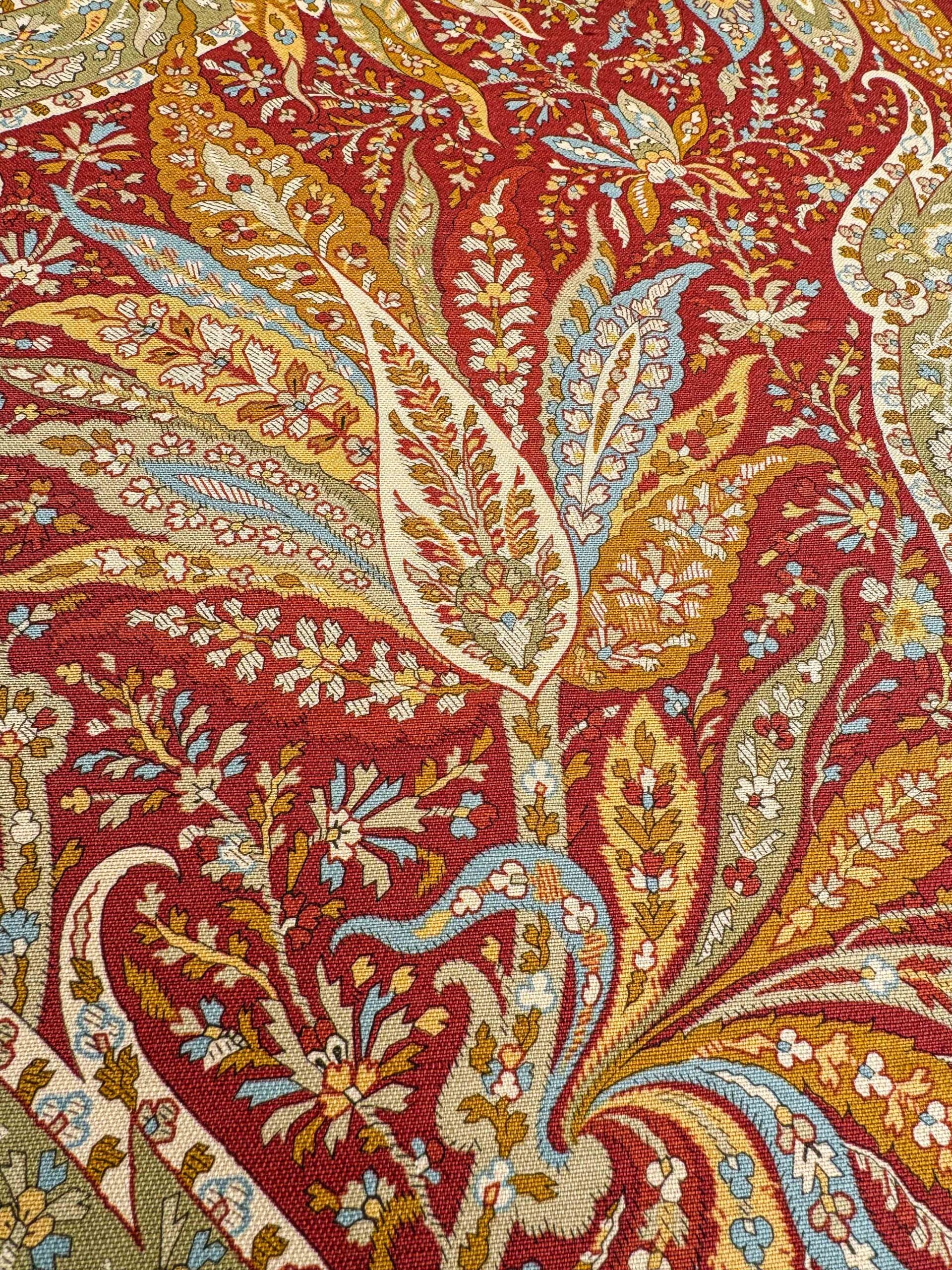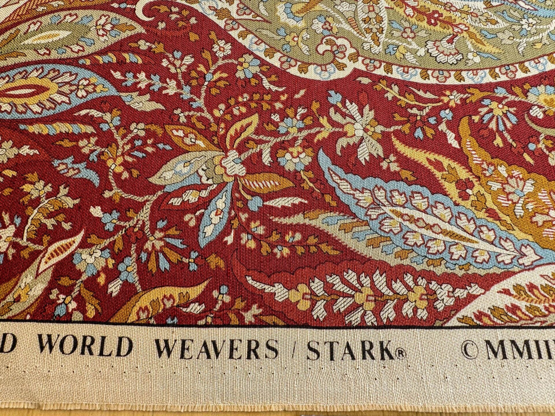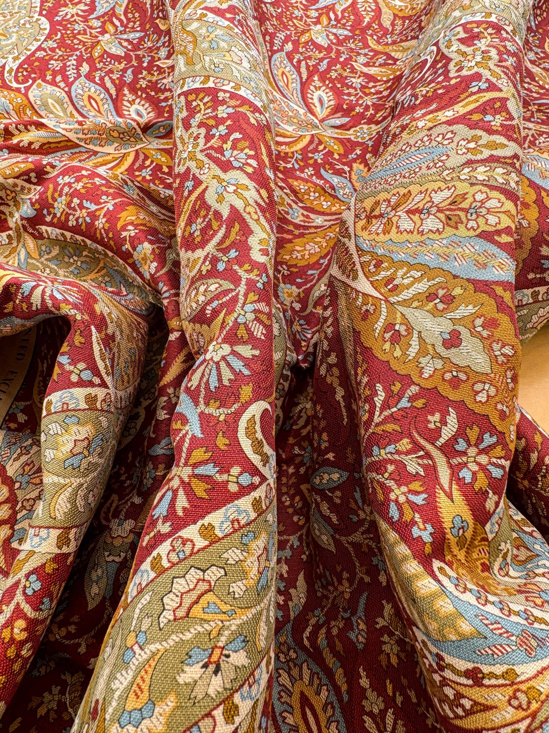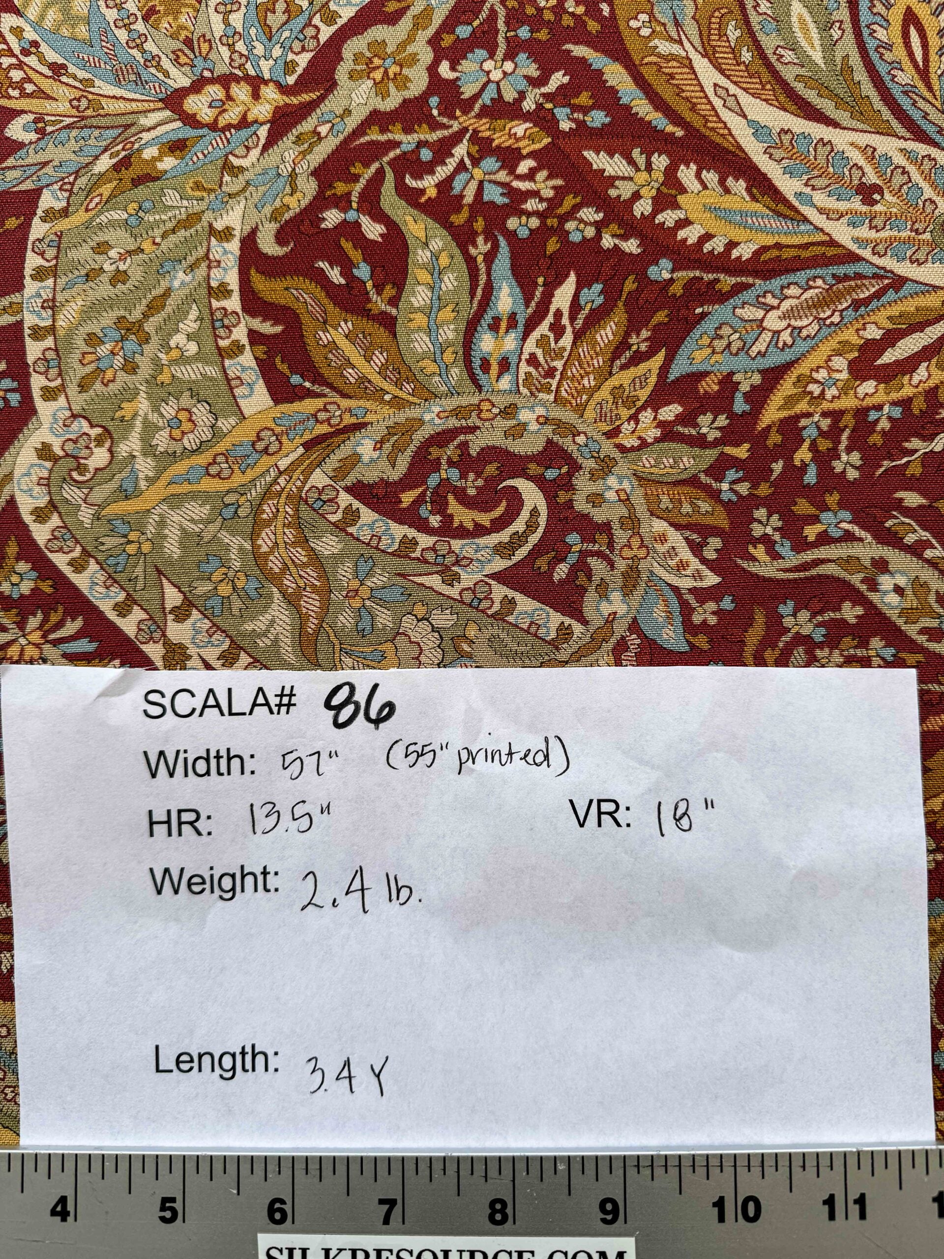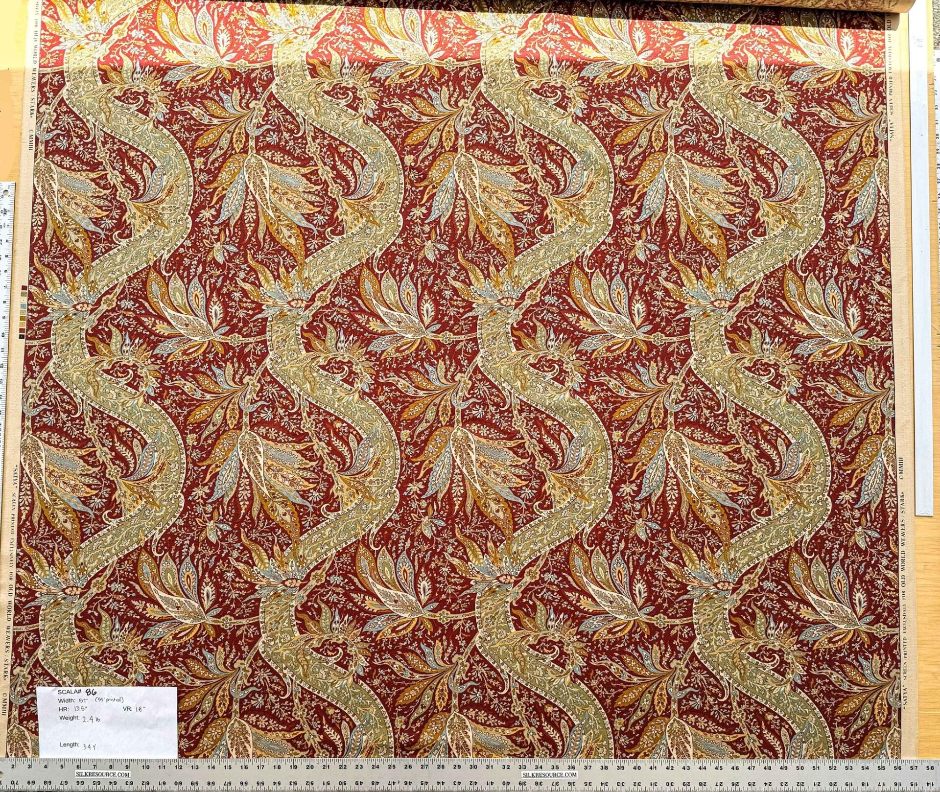 3.4y Scalamandre Satya Red Green Tropical Botanical Tree Foliage Stripe