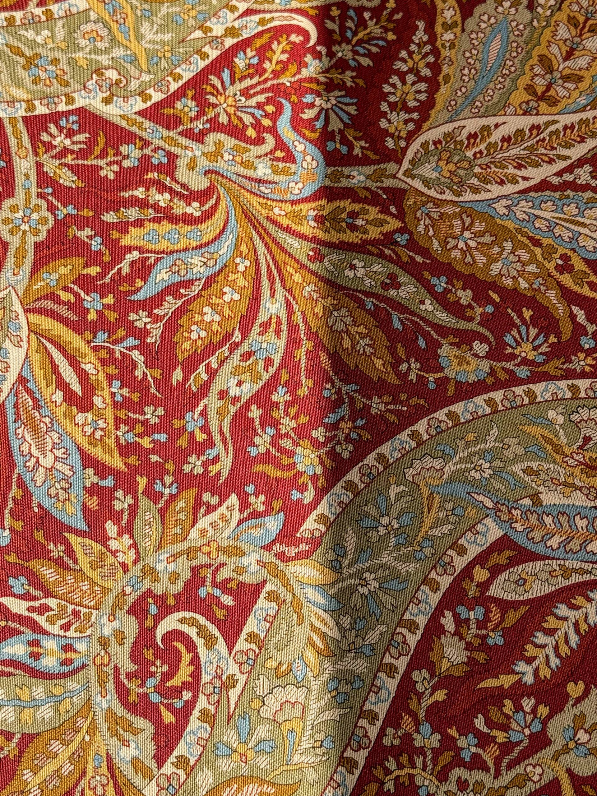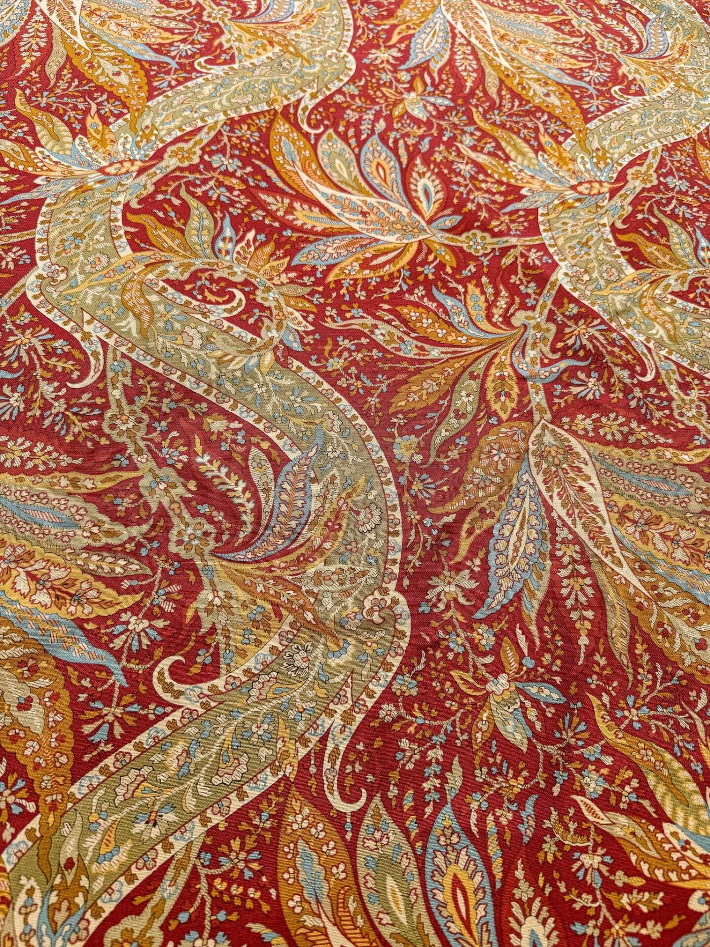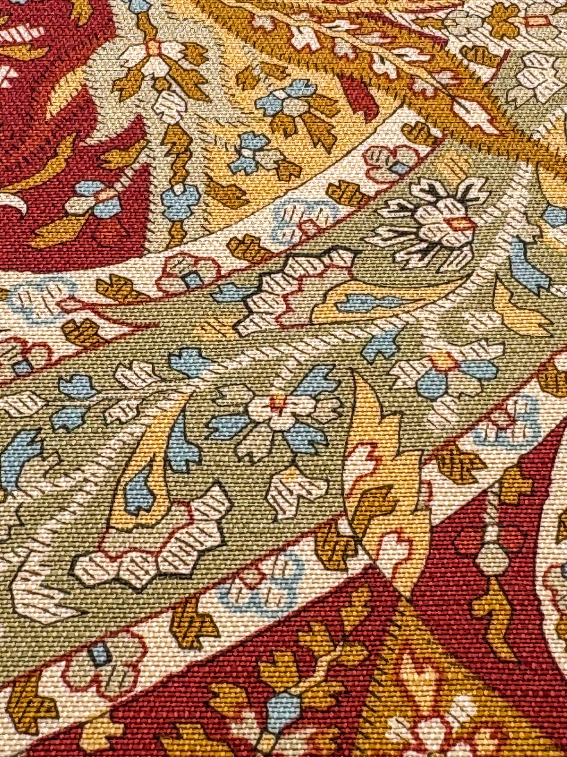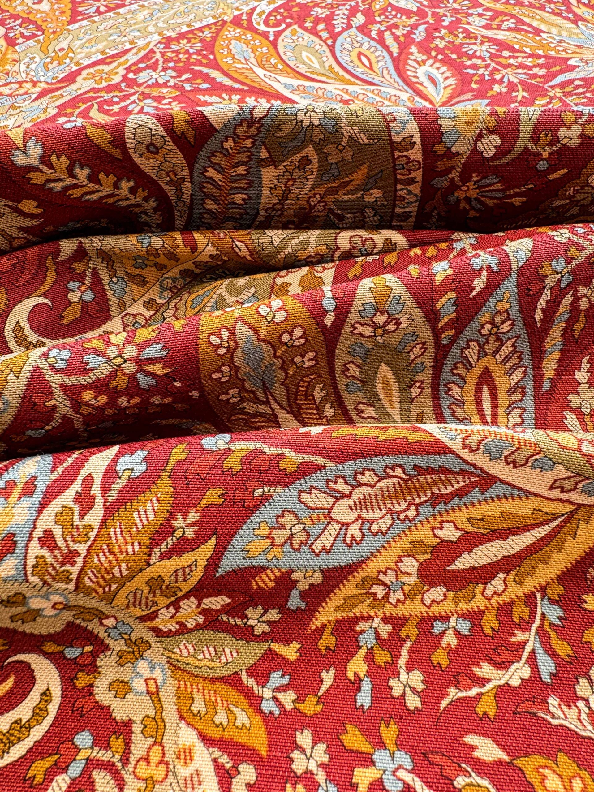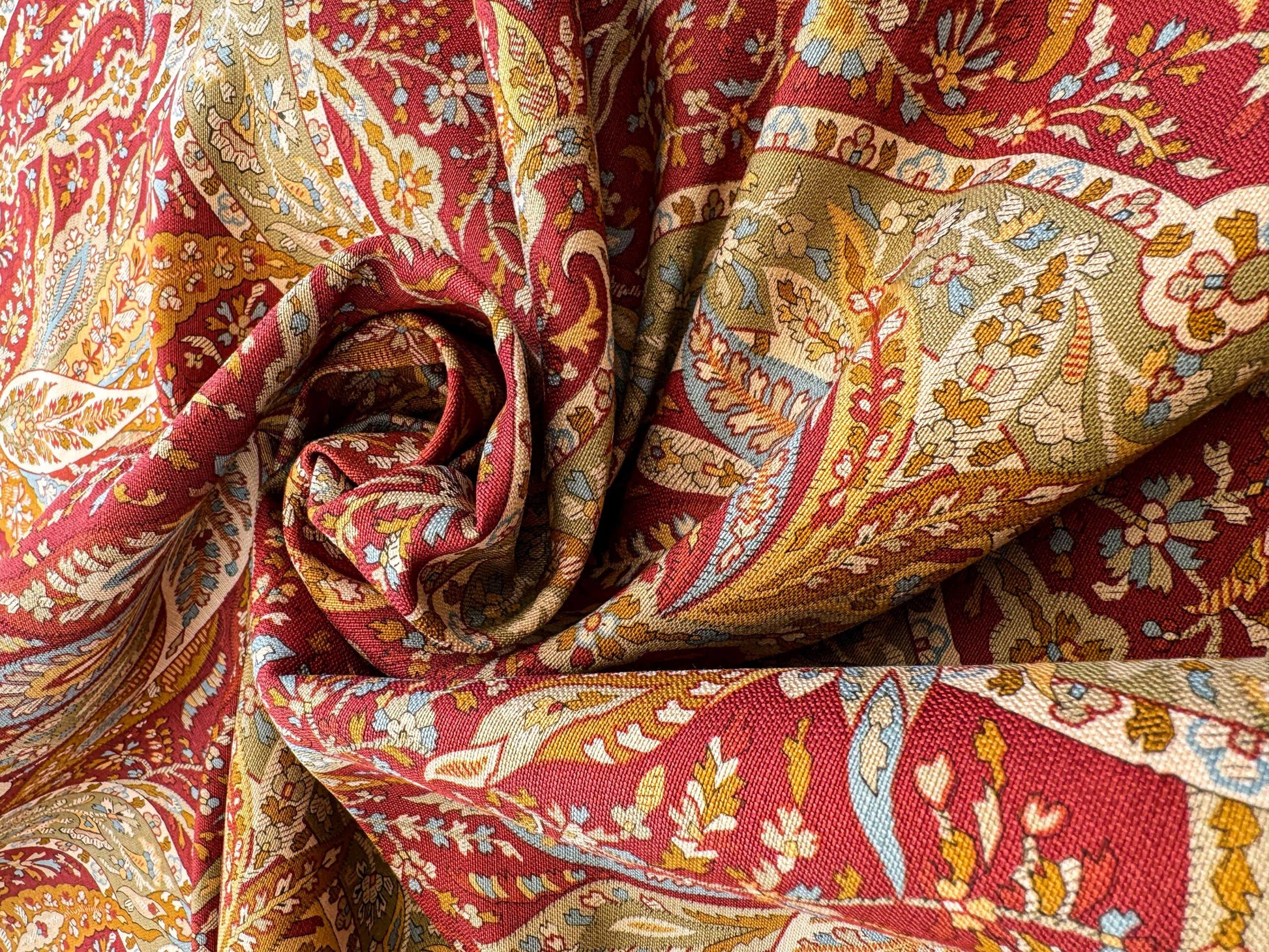 3.4y Scalamandre Satya Red Green Tropical Botanical Tree Foliage Stripe