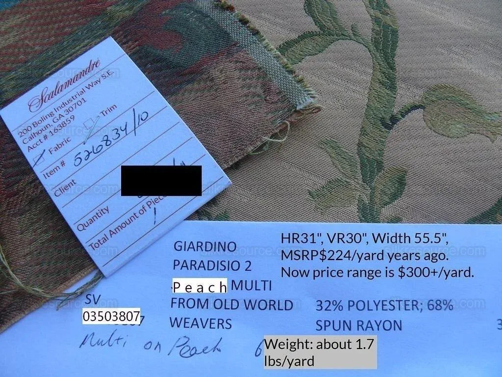 2.75y Scalamandre Giardino Paradisio 2 Peach Multi Old World Weavers MSRP$224/yard