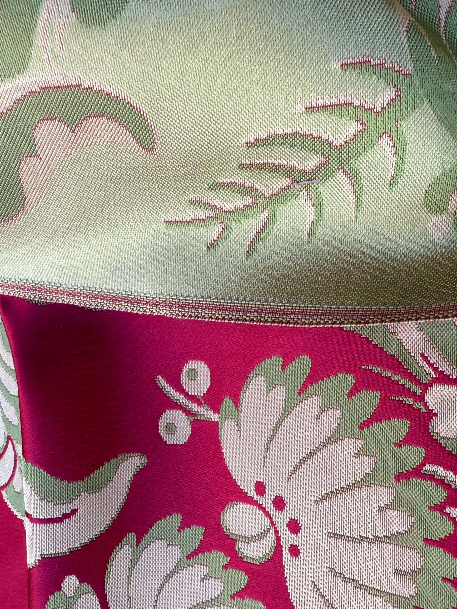 This signature pattern first created by order of King Louis XIV, which has become a classic in the history of French home decor. It now includes two new colorways. The contemporary quality and elegant feel of the new Opal and Nacre colorways will provide a source of inspiration for interior designers looking for sophisticated accents to add to interiors with minimal decor. As well as those looking for gorgeous elements to design an atmosphere centered around light and the unique characteristics of silk fabric and regal patterns: vivid colors, exquisite details, rich patterns and light reflections. This soft and supple all-silk lampas is woven at the Lelièvre Paris mill near Lyon, France.