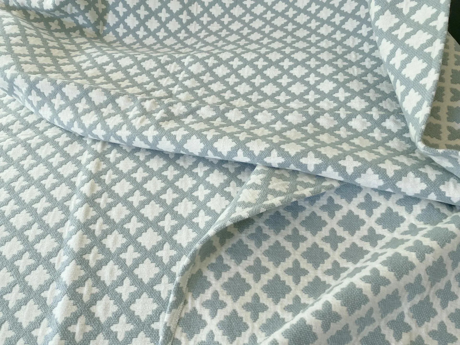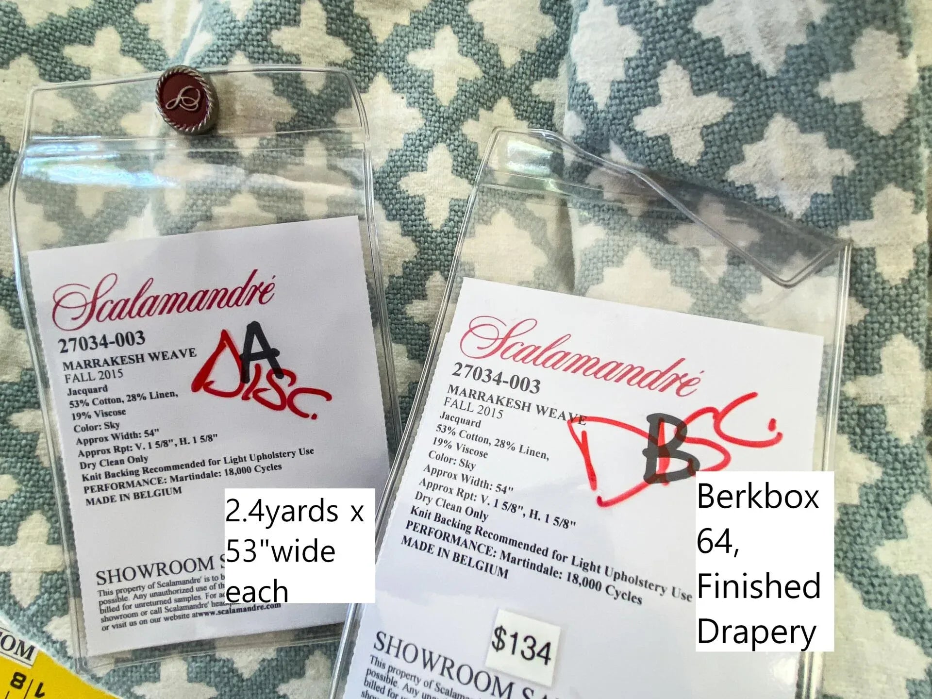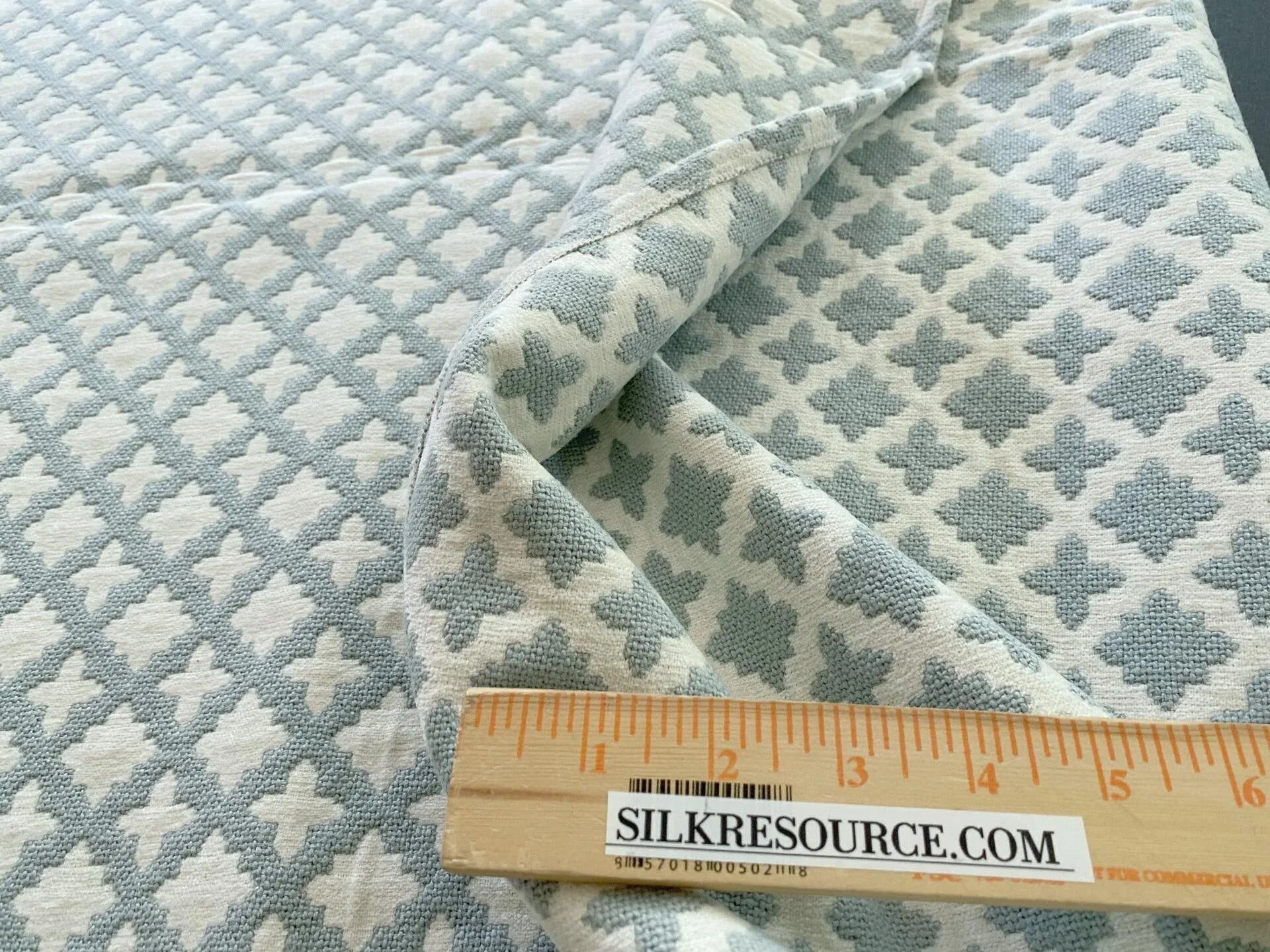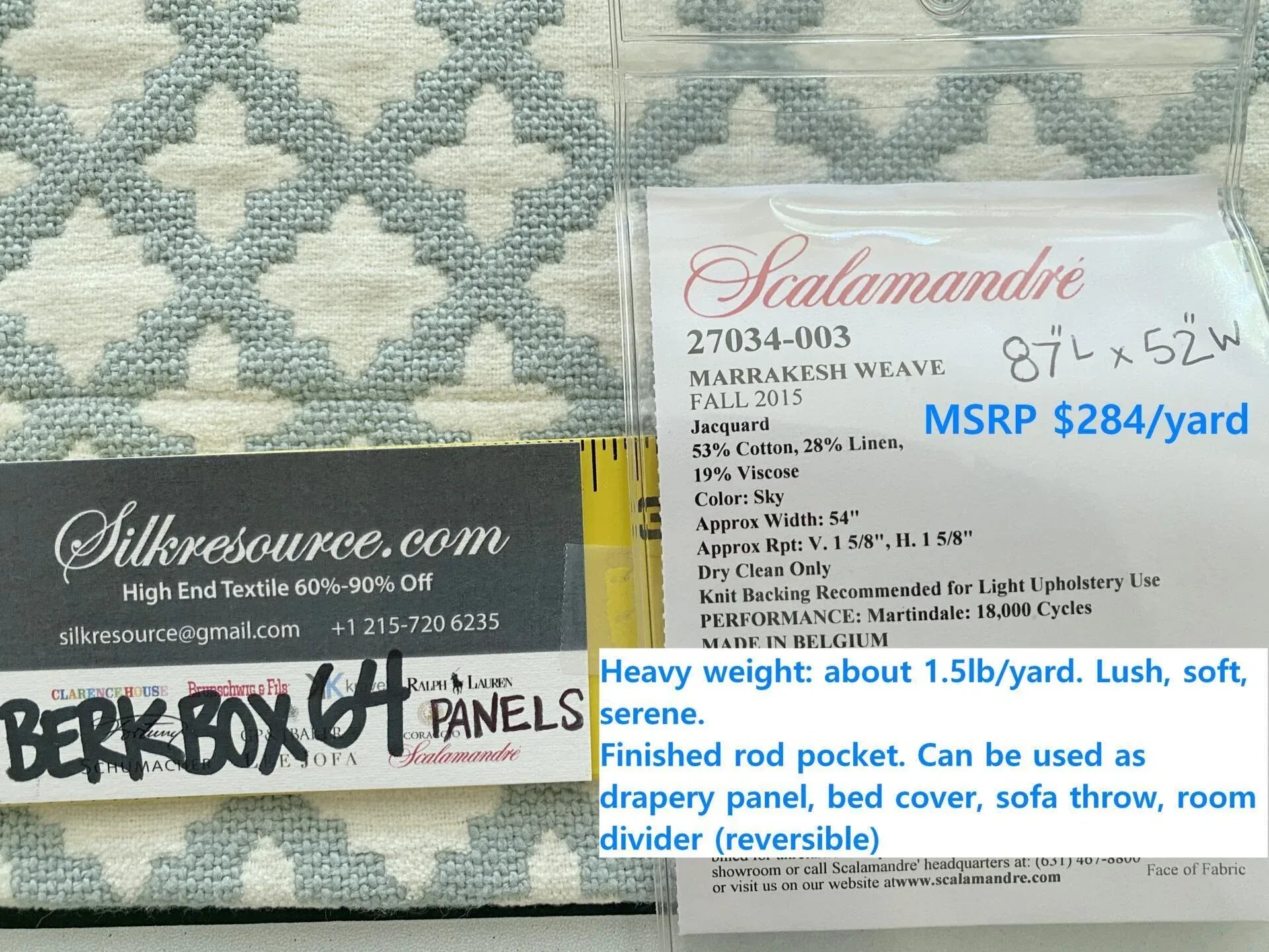 3 Berkbox64 Finished Drapery 2.4yard Scalamandre MARRAKESH WEAVE Sky Light blue and White Geometric MSRP USD284