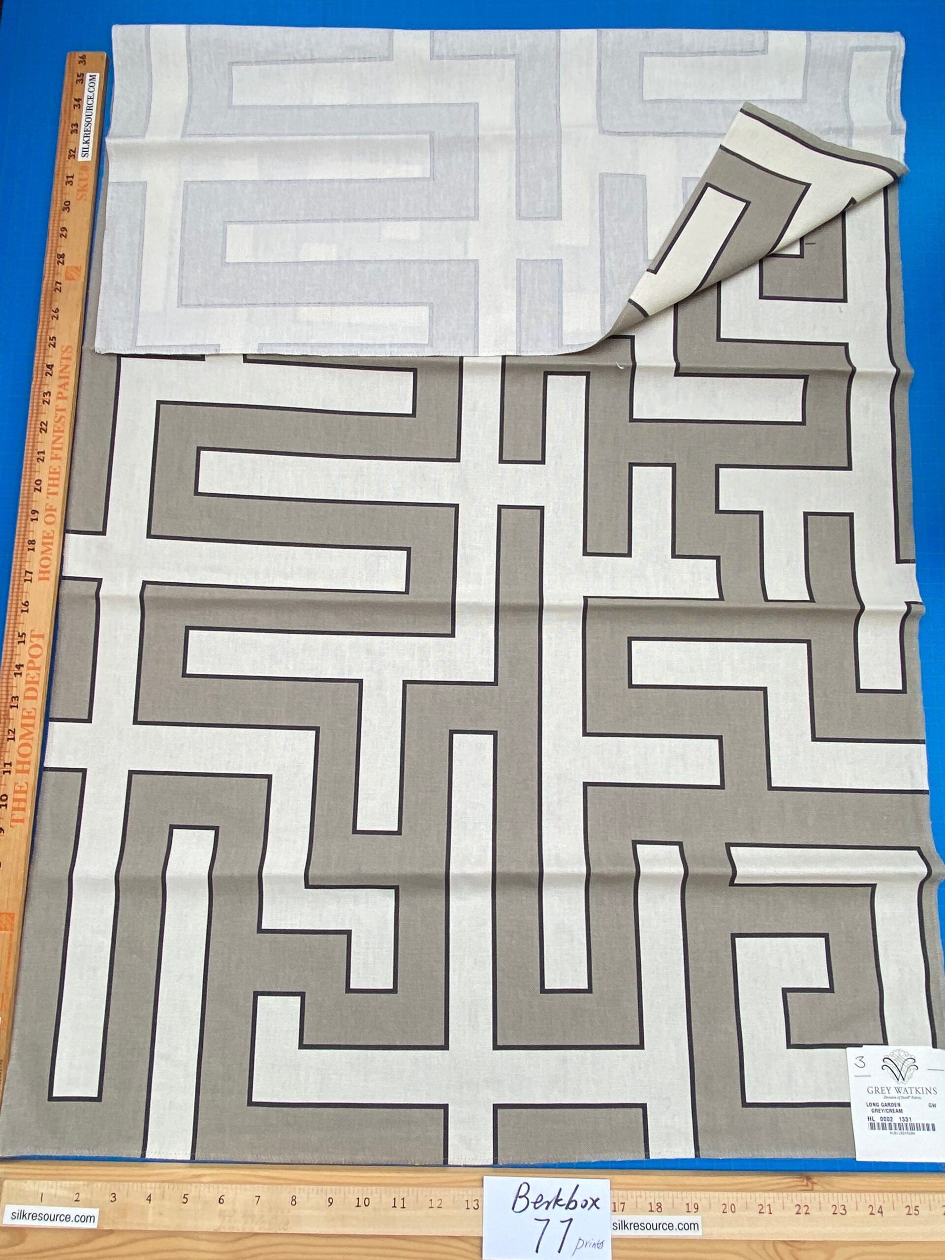 3 Berkbox77 Square Printed Fabrics by Grey Watkins Long Garden Grey Cream White Black Geometric 1.2yd x 26" MSRP USD156/y