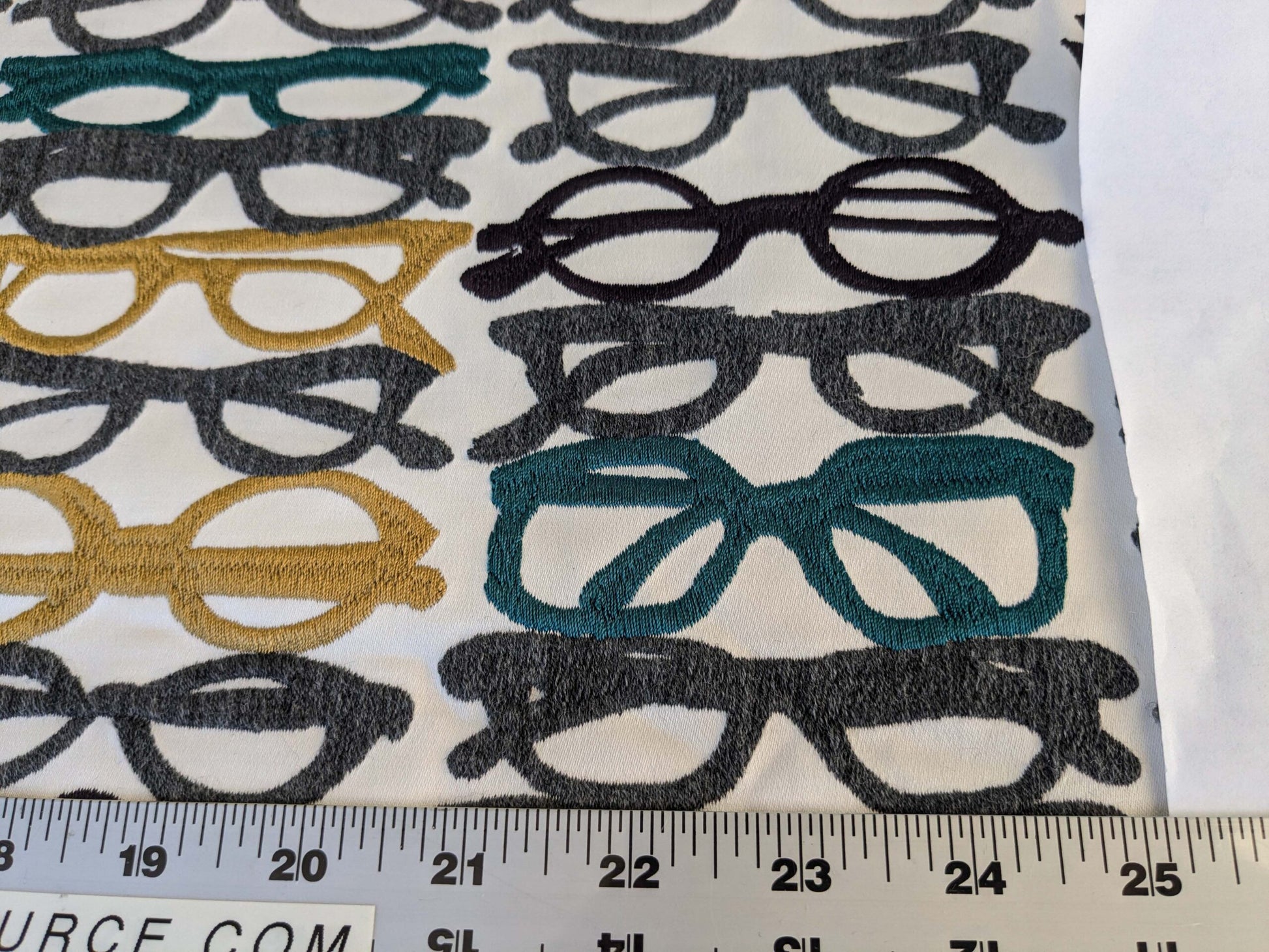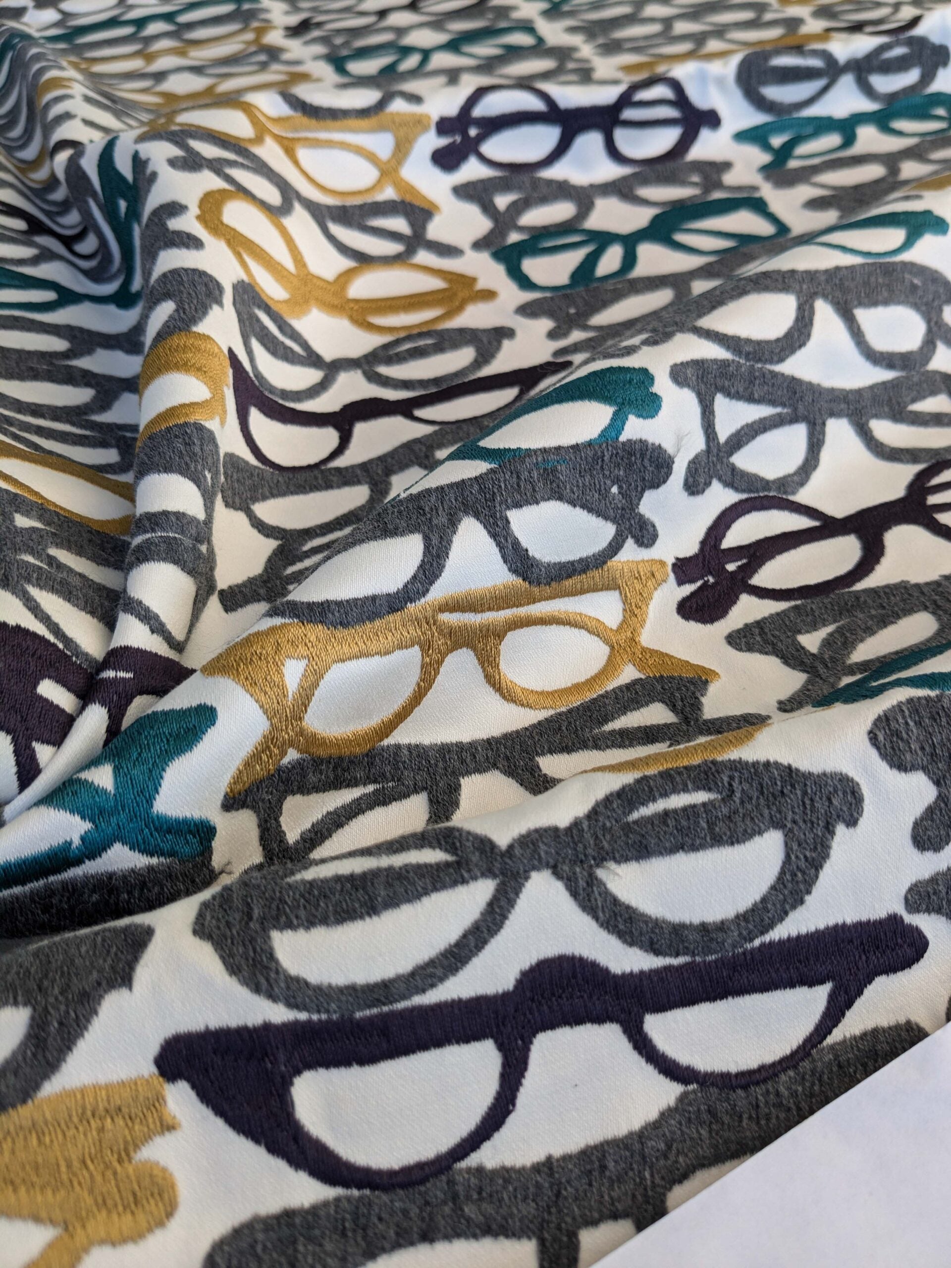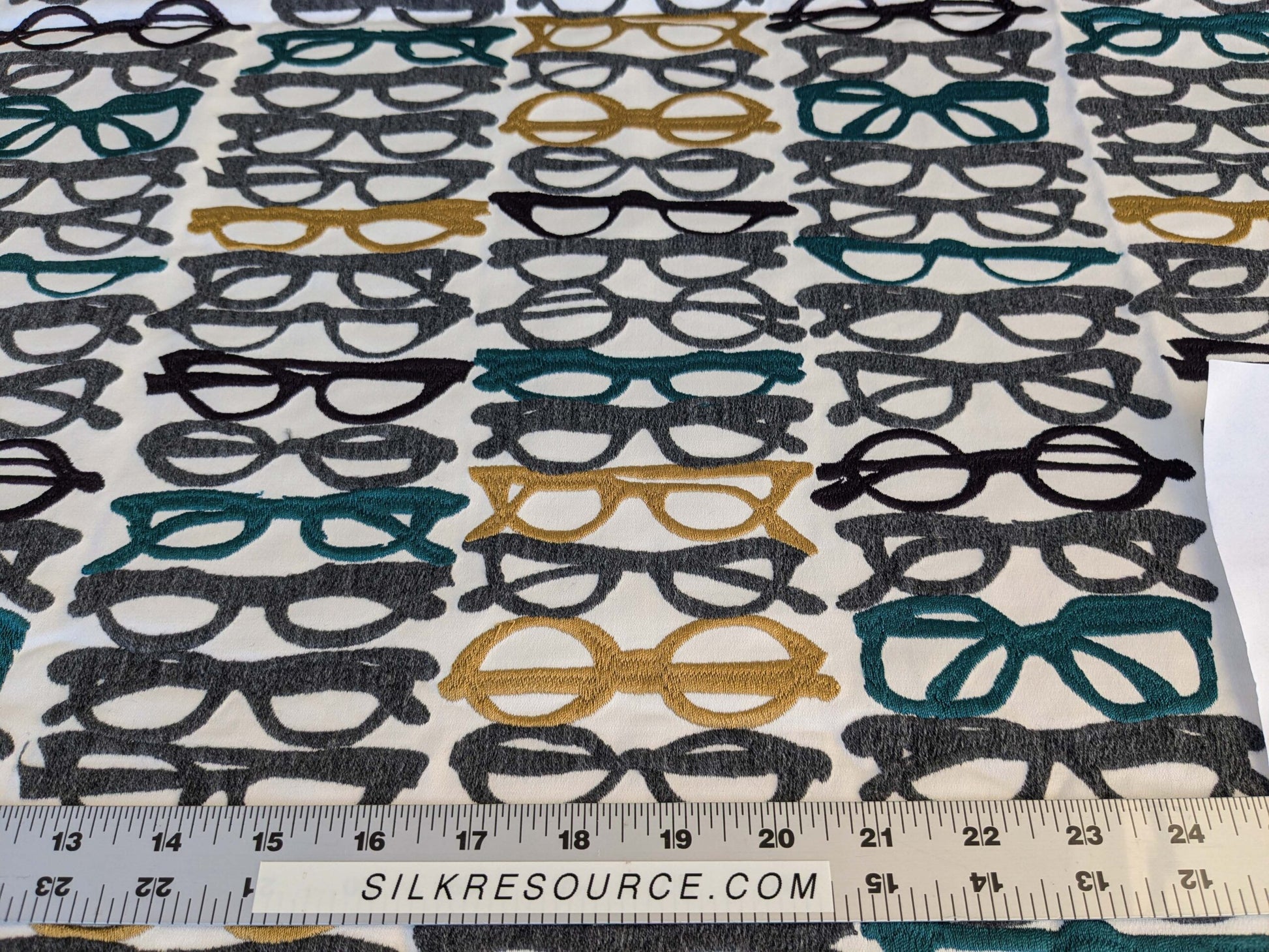 3 EV44 1.2y x 52"w Scalamandre Pop Art Black Tropical Vintage Gray Blue Black White Brown Art Deco Glasses Pattern Embroidery MSRP USD 640/y