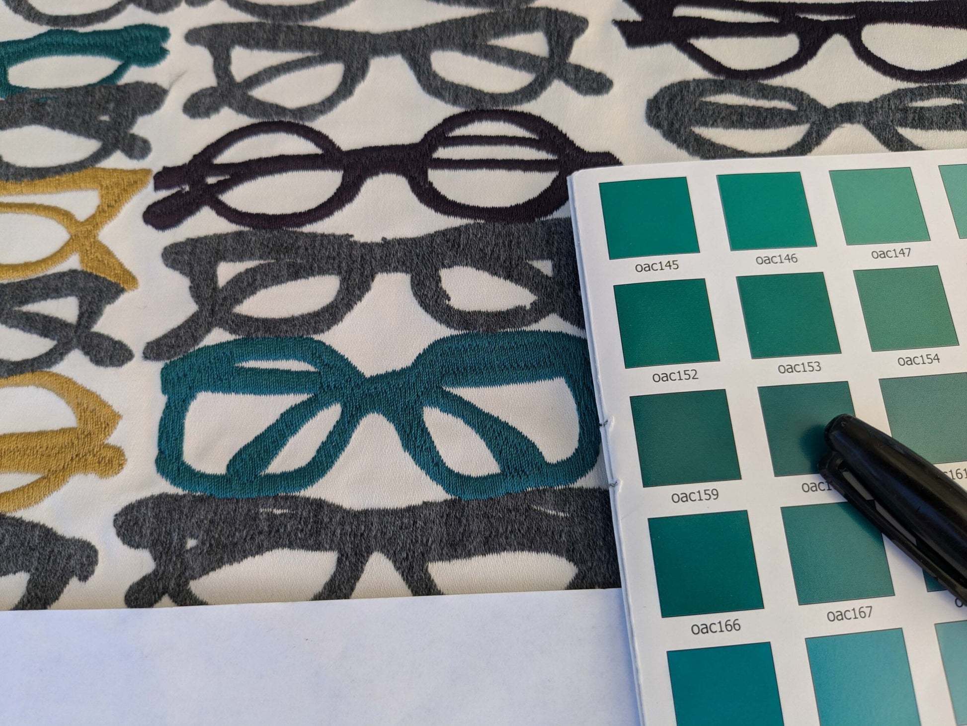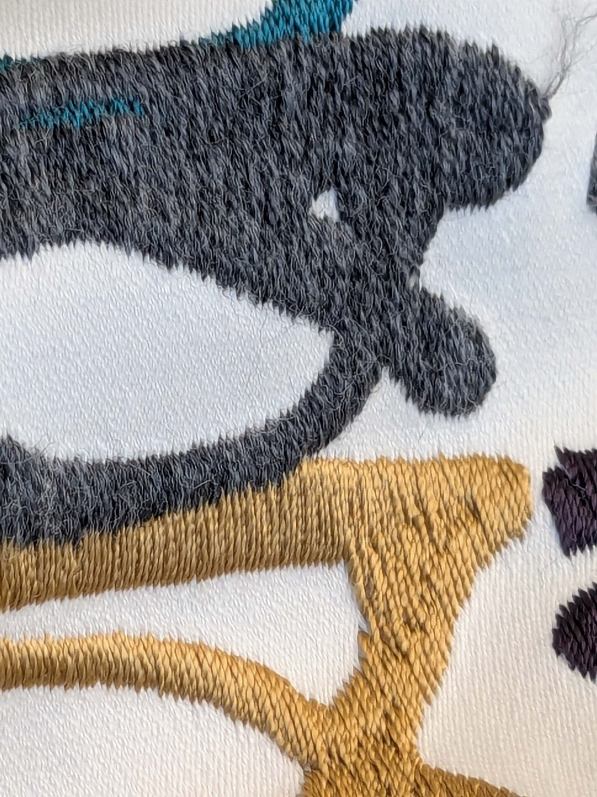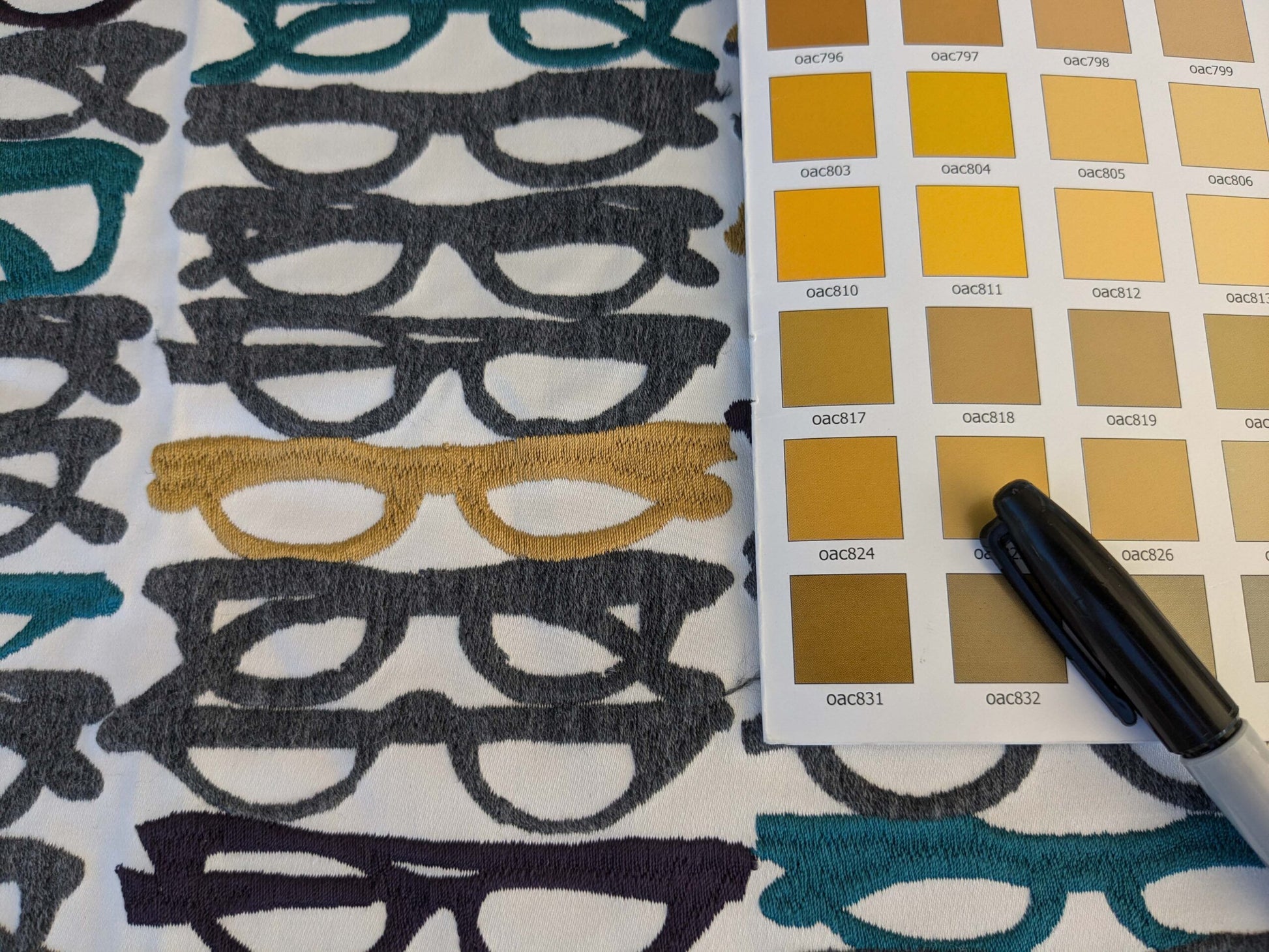 3 EV44 1.2y x 52"w Scalamandre Pop Art Black Tropical Vintage Gray Blue Black White Brown Art Deco Glasses Pattern Embroidery MSRP USD 640/y