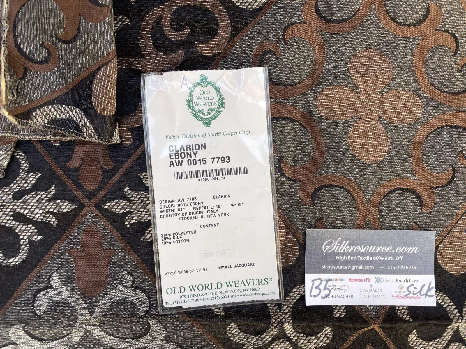 Fiber, repeat, width, weight, country of origin, WHOLESALE price/yard: