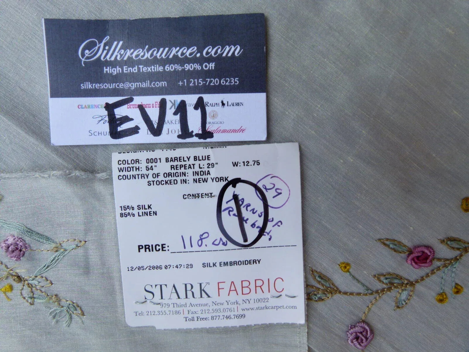 30 Ev11 Scalamandre Showroom Sample 33"x27" Nilima Barely Blue Delicate Floral Vine Embroidery Silk Linen Per Piece